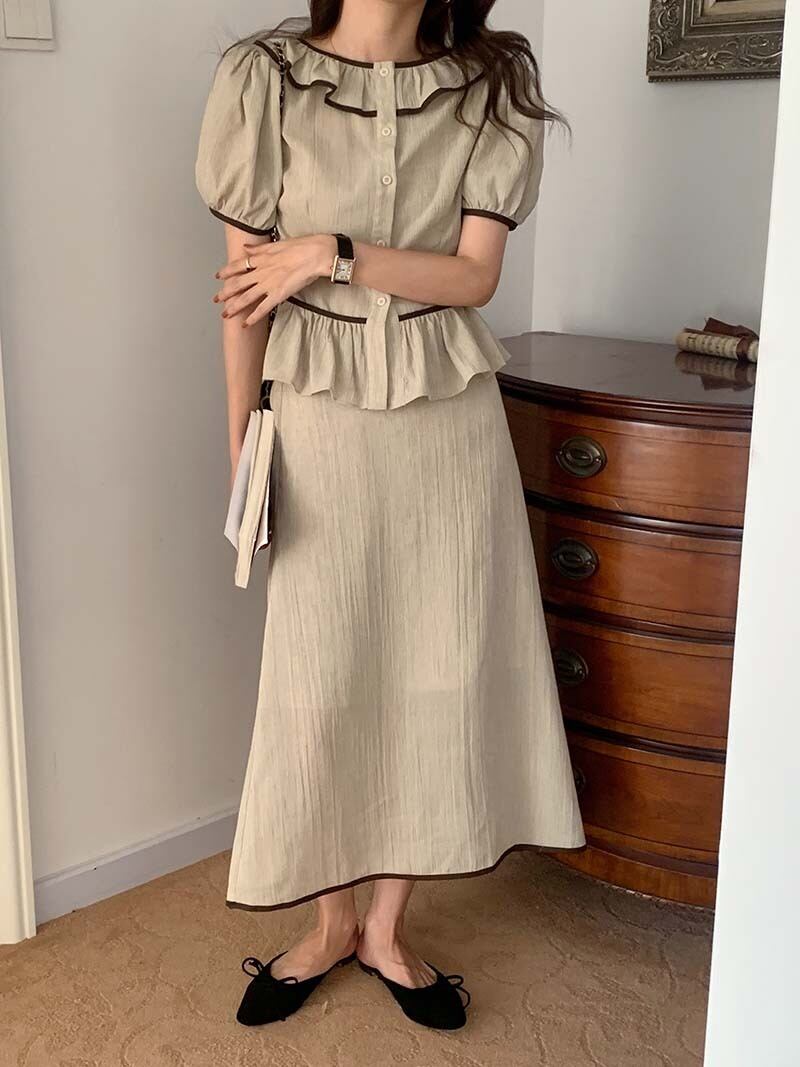 シャツ Aラインスカート サマースタイルスリーブトップス 夏物 ビッグFスモールZ韓国68946707365