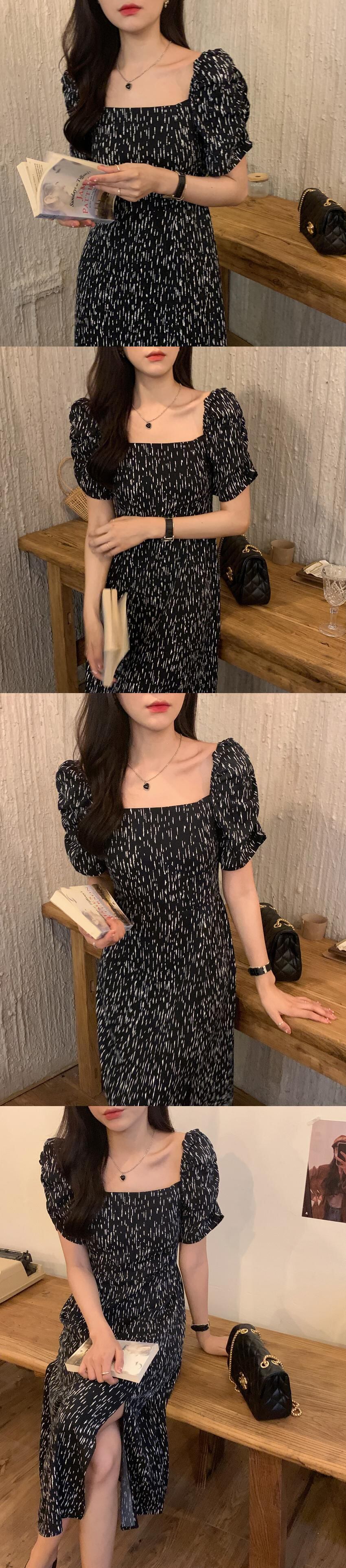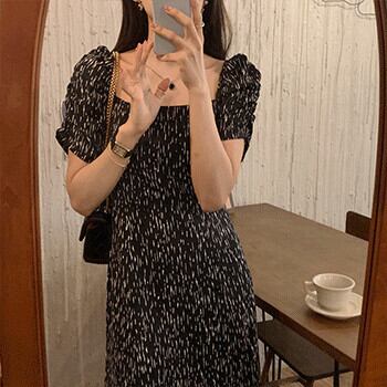 プリーツドレス サマースタイルスリーブウェストAライン薄手スカート 夏物 スクウェア ビッグFスモールZ韓国22004282855