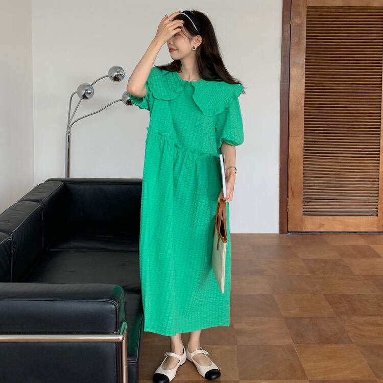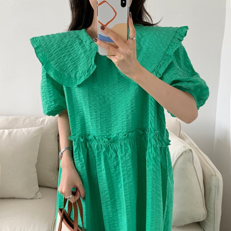 カラーソリッド ドレス サマー薄手スカート 大人ガーリー スウィート キュート カジュアル 夏物 ソリッドカラー ビッグFスモールZ韓国43076564514