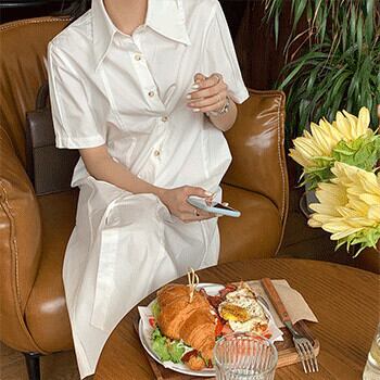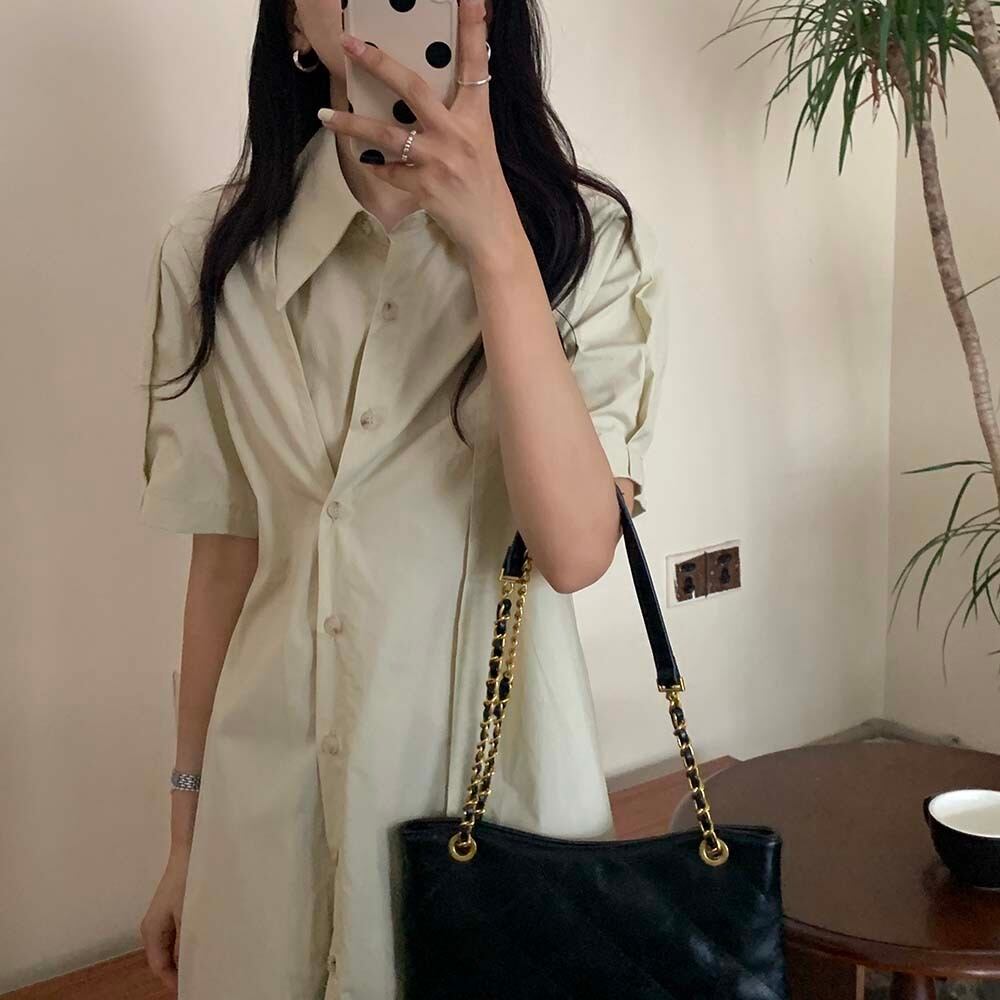 ソリッド カラーボタンドレス サマー薄手シャツ スカート 夏物 ソリッドカラー ビッグFスモールZ韓国15288115754