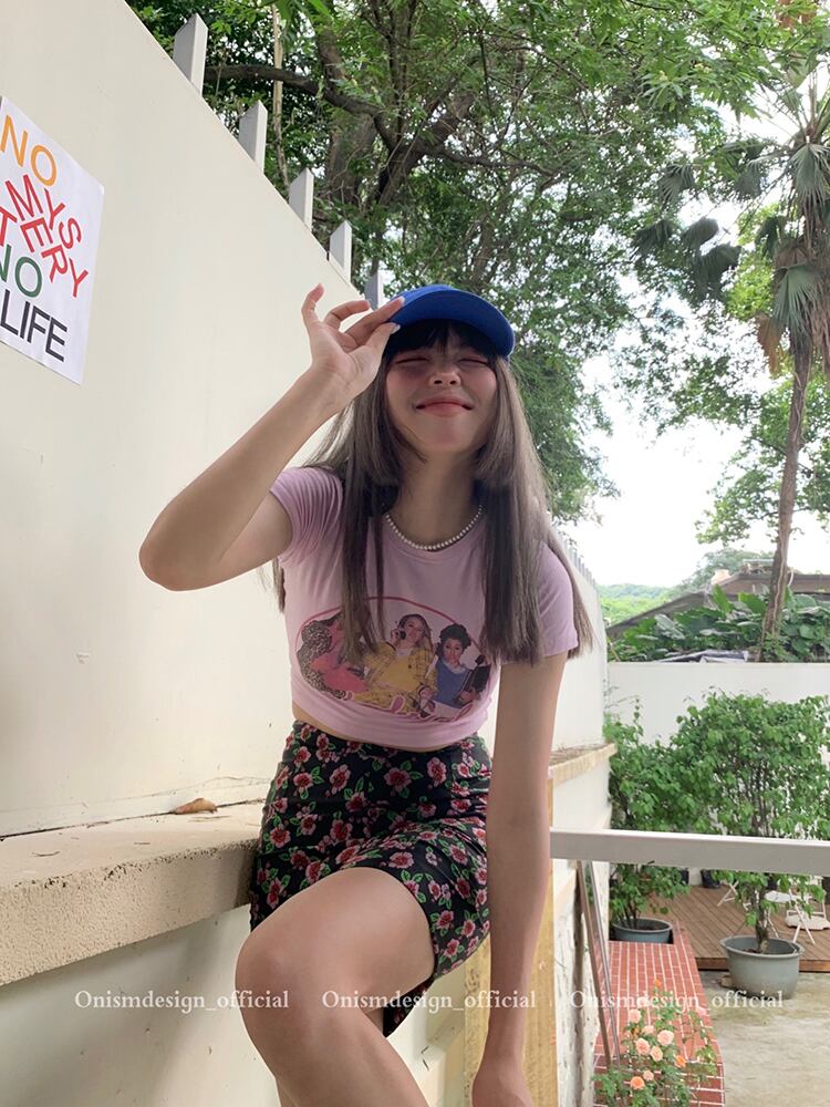 プリントショートTシャツ シャツ サマースリム薄手ラウンドネック ピンク 夏物 Oネック ビッグFスモールZ韓国17604232268