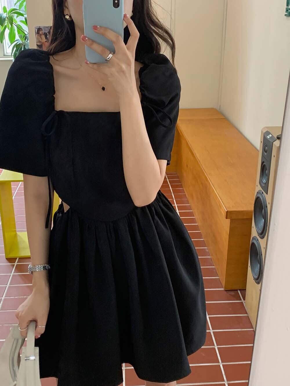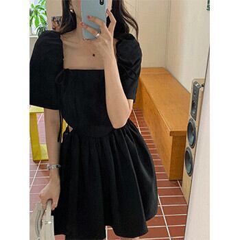 ハートウェストドレス サマーカラースリーブスカート レース 夏物 レースアップ ピュア ビッグFスモールZ韓国17812096054