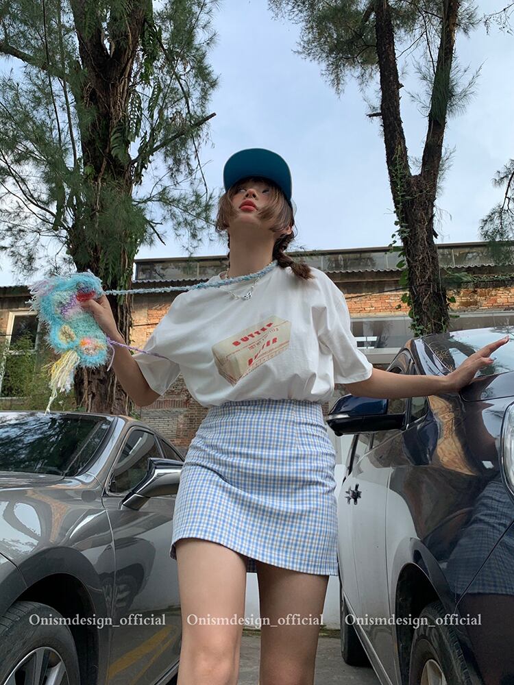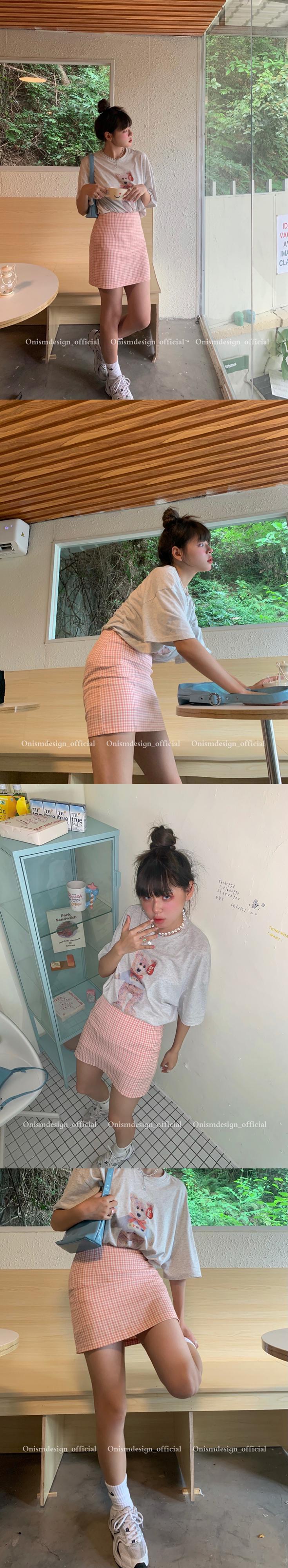 格子柄ウェスト薄手スカート サマーショート ピンク 夏物 ビッグFスモールZ韓国74787213547