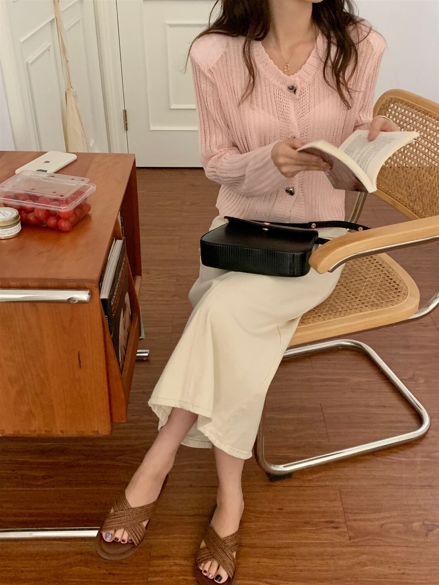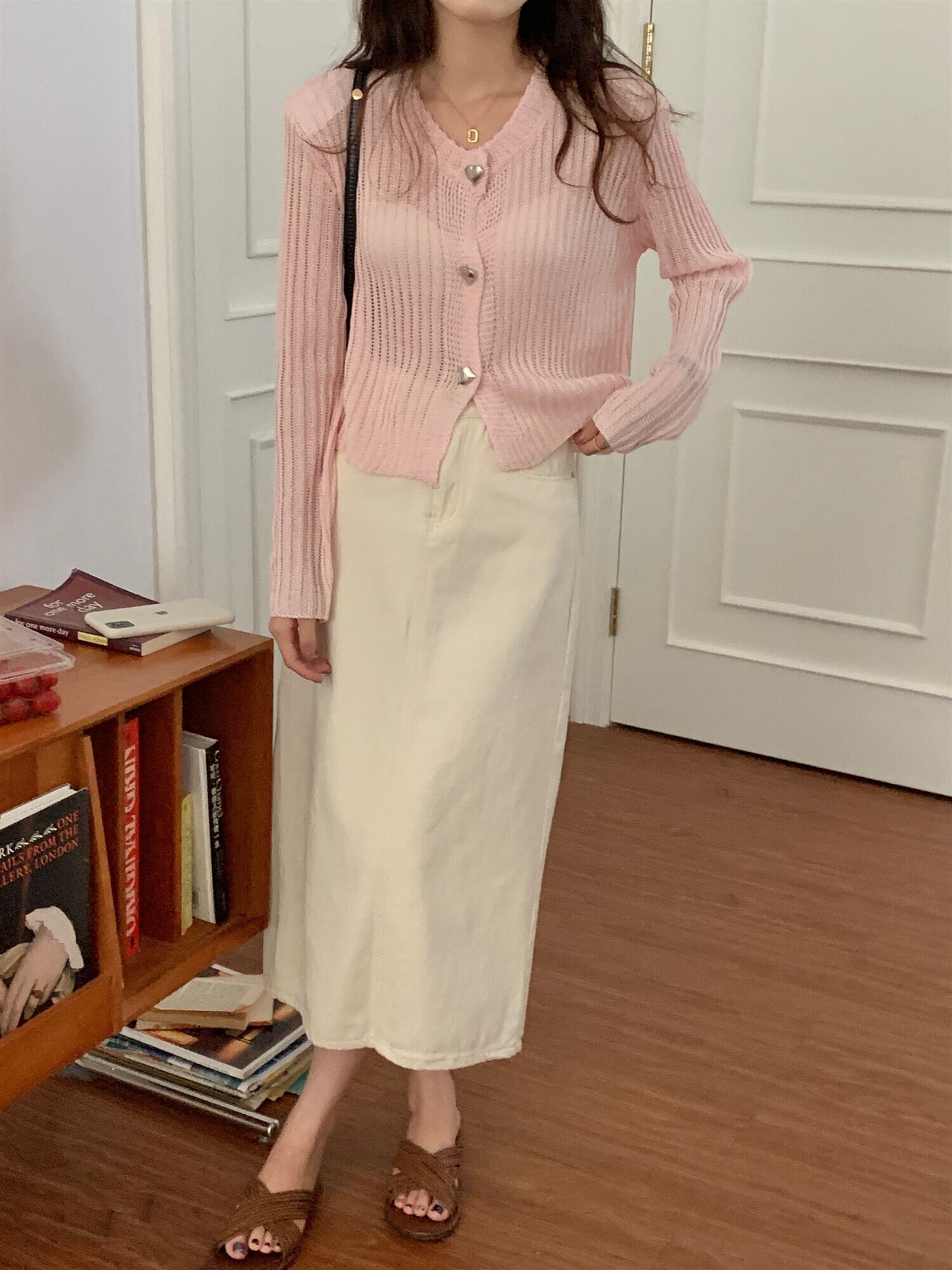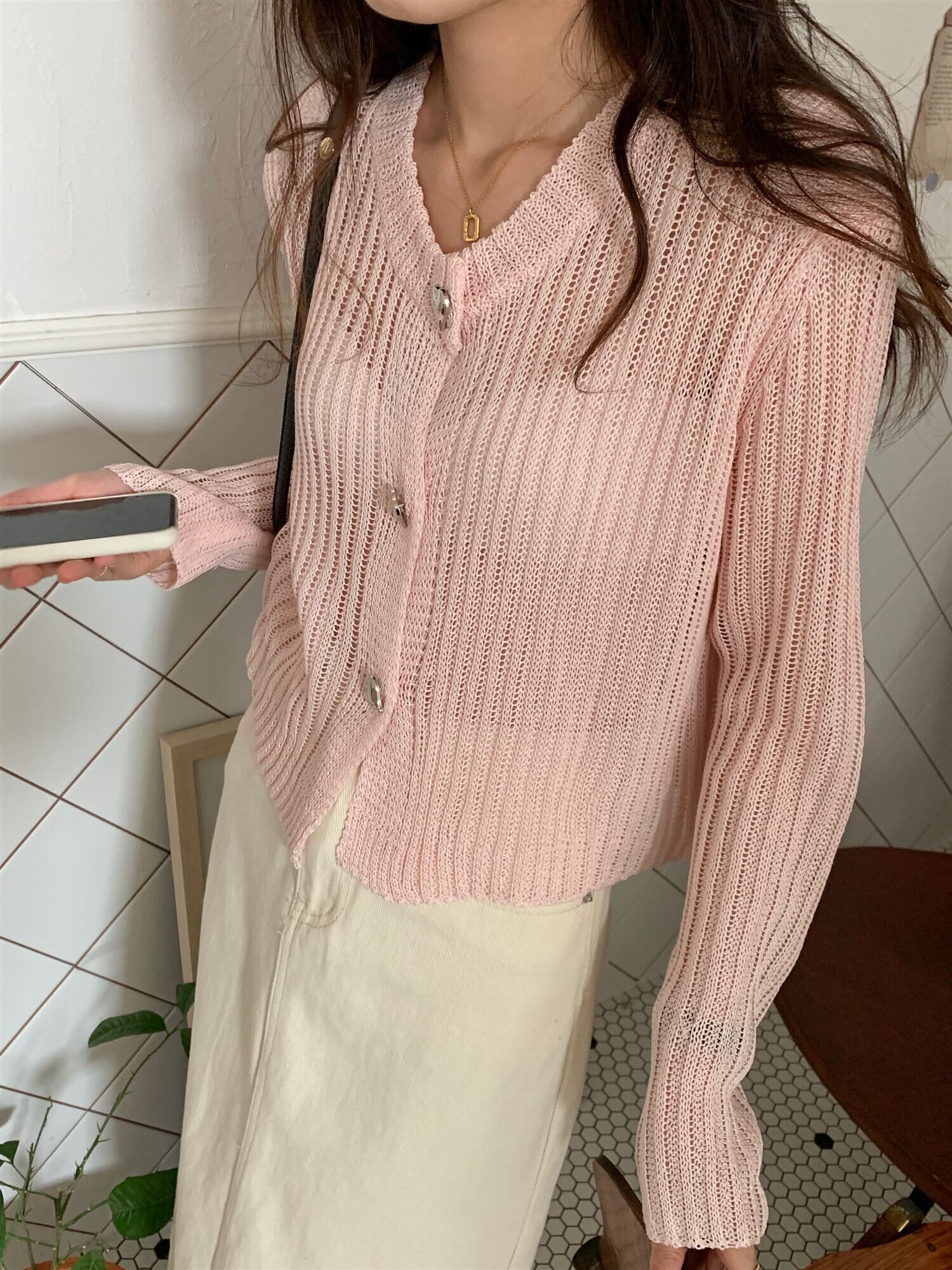 ラウンドネック薄手ソリッド カラーショートニットセーター レディースサマーカーディガン ロング 夏物 Oネック ソリッドカラー ビッグFスモールZ韓国69474470861