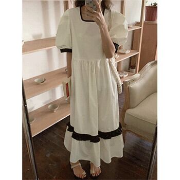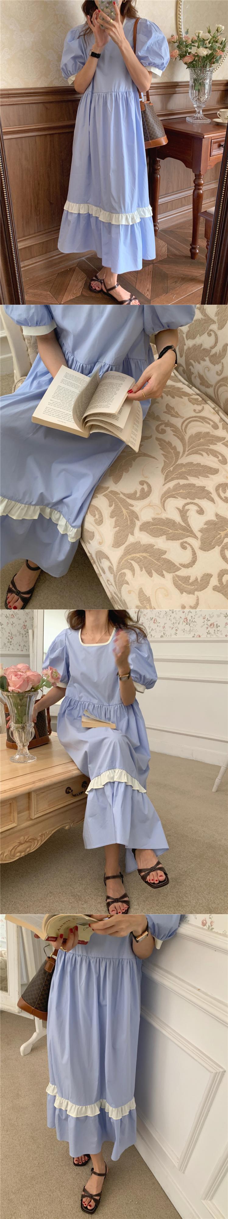 ストライプスリーブドレス サマースタイルプリーツウェスト薄手Aライン 夏物 ビッグFスモールZ韓国41003197011