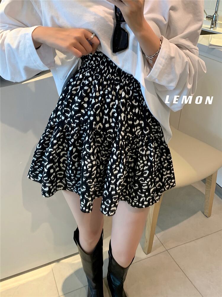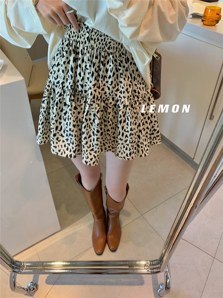 レオパードプリント柄ハイウェストレーススカート サマースリムショート 夏物 ビッグFスモールZ韓国8355472442