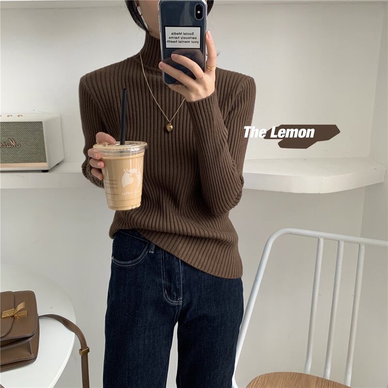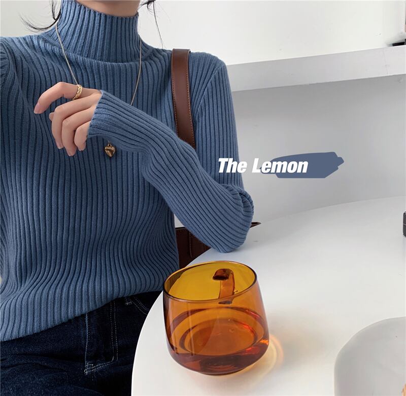 カラーニットストライプスリムトップス レディース ビッグFスモールZ韓国12846730192