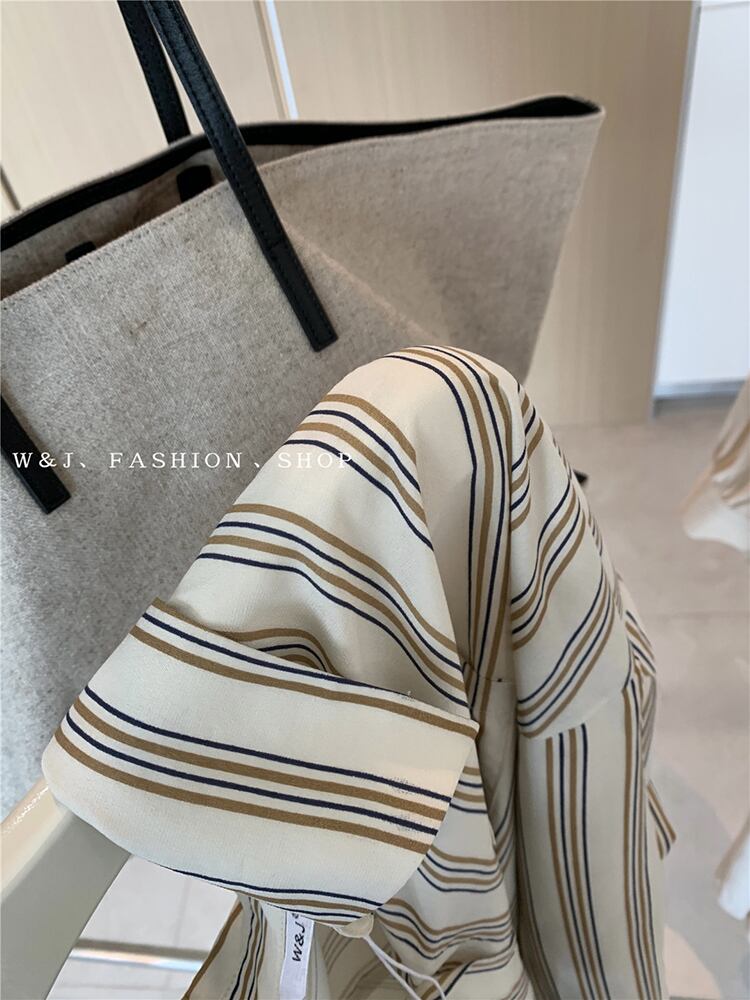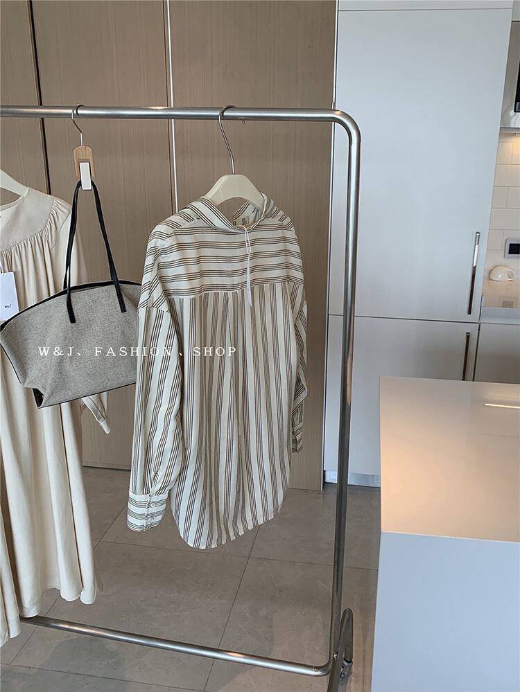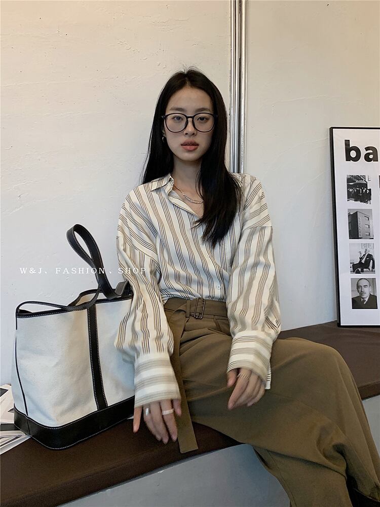 ストライプルーズシャツ オータムカラー長袖スリーブ ロング 秋物 ビッグFスモールZ韓国66569374919