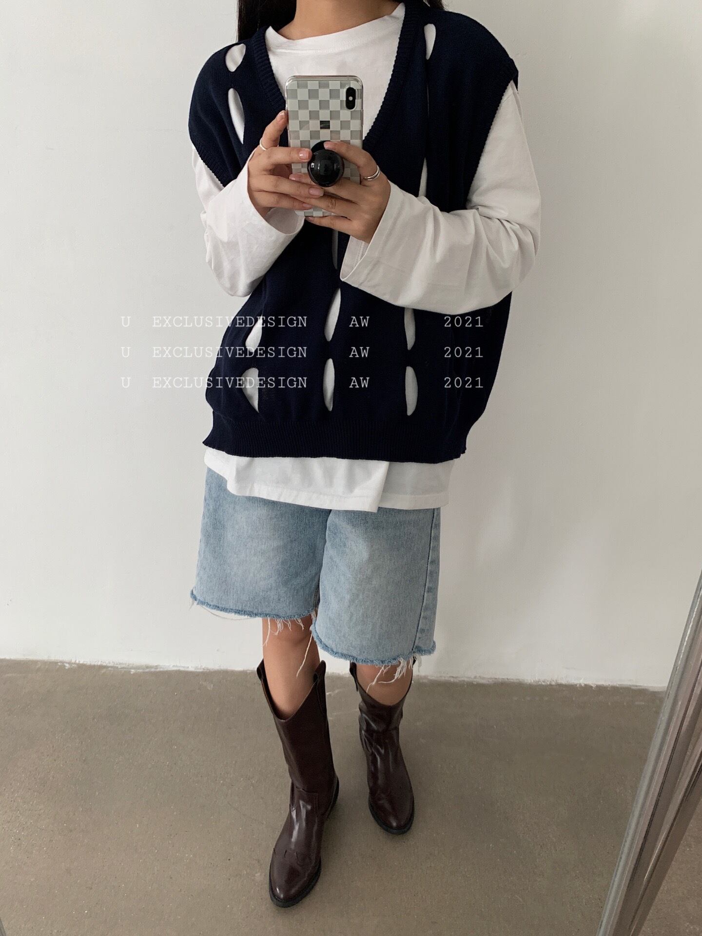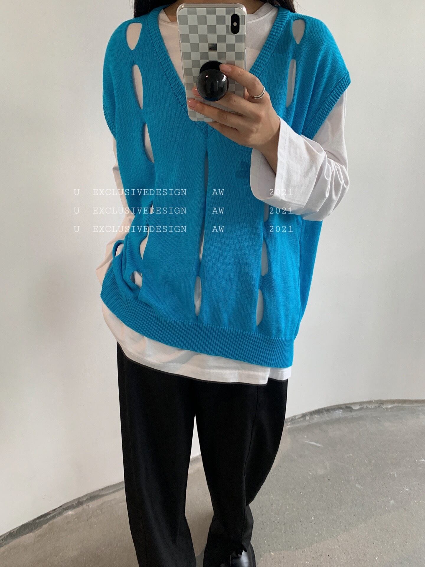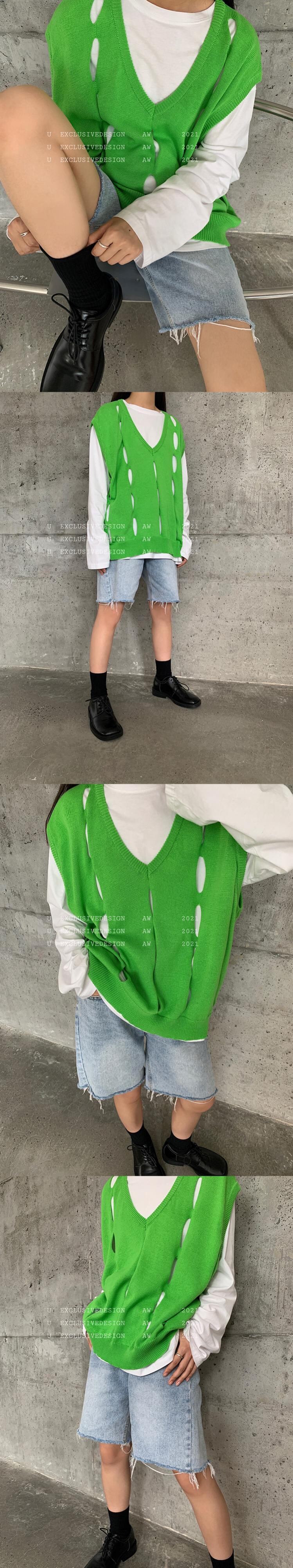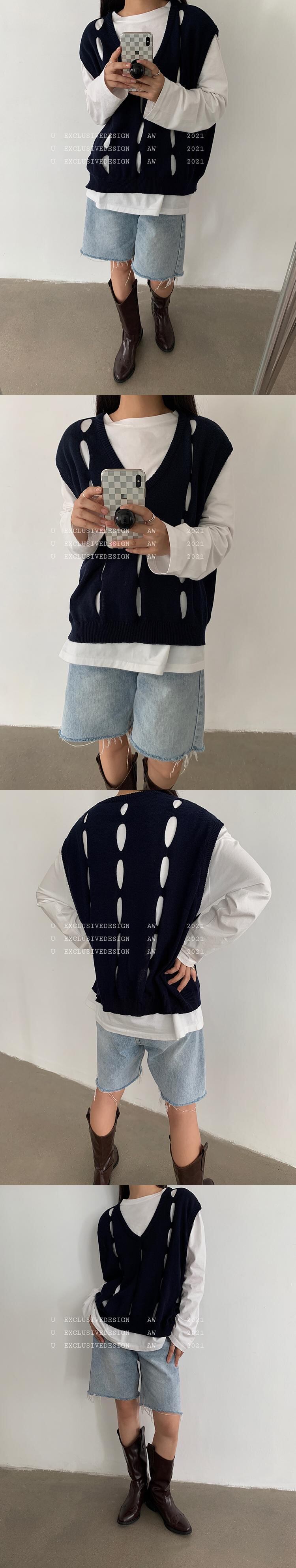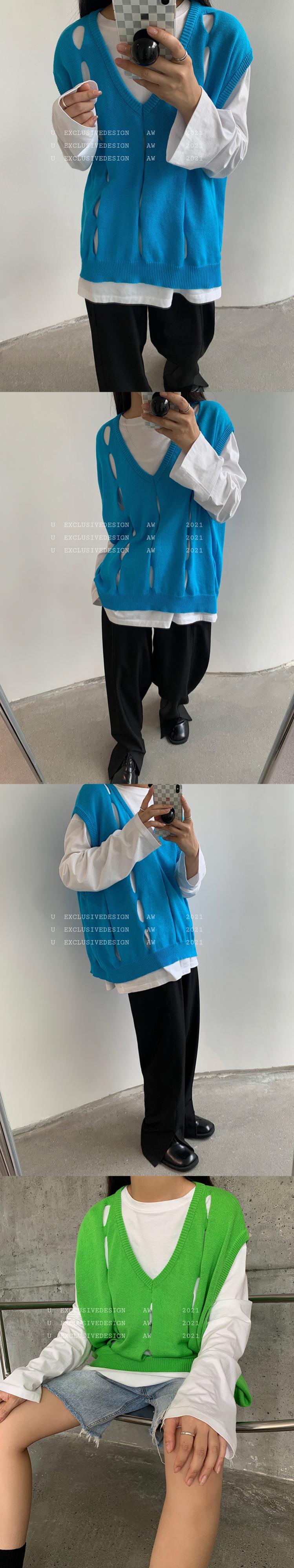 ニットブラウス オータムルーズVネックノースリーブ 秋物 ビッグFスモールZ韓国96640965313