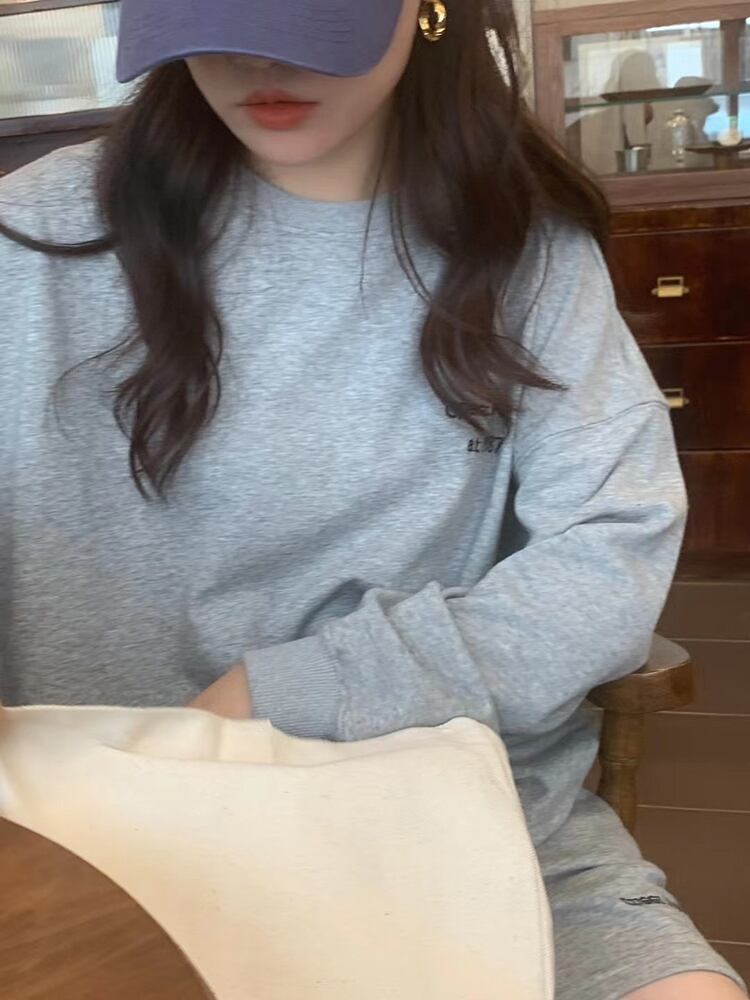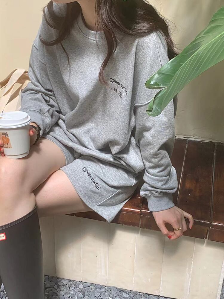 カジュアルオータム刺繍ルーズプルオーバー セーター ショーツ ロング 秋物 ブルマー ビッグFスモールZ韓国6935519534