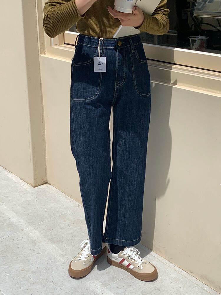 ジーンズ オータムハイウェストウェストスタンダード レトロ 秋物 ビッグFスモールZ韓国52720230999