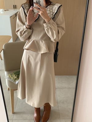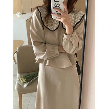 ドレス オータムカラーハイウェストスカート ロング 秋物 ビッグFスモールZ韓国50270332168
