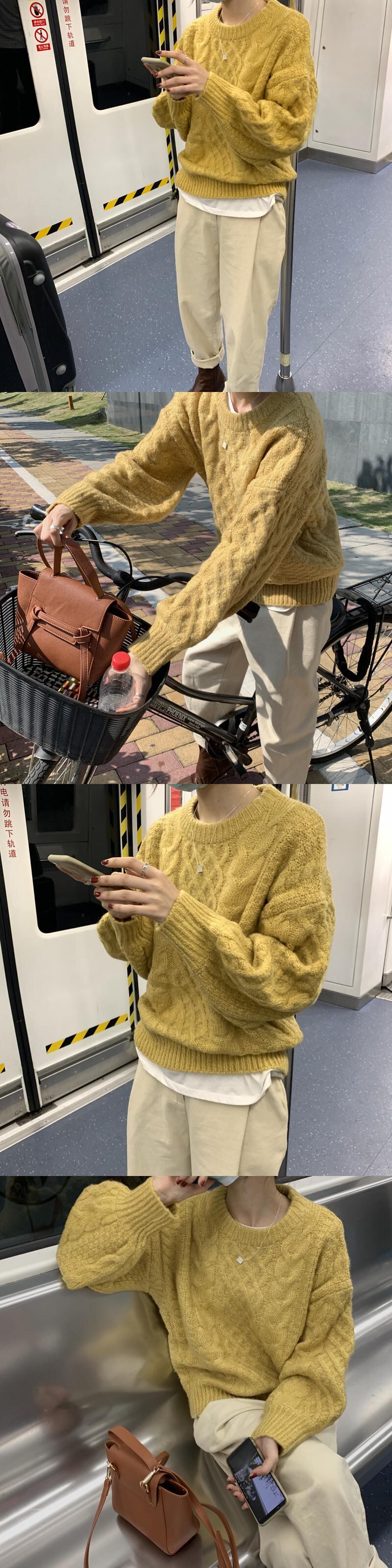 スタンダードセーター ルーズラウンドネック長袖スリーブニットプルオーバー レディース ロング レトロ Oネック ビッグFスモールZ韓国90246667243
