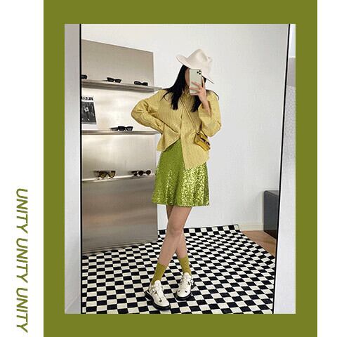 スカート オータムスタンダードハイウェストウェストAラインショート レトロ ストリート 秋物 ビッグFスモールZ韓国69394090641