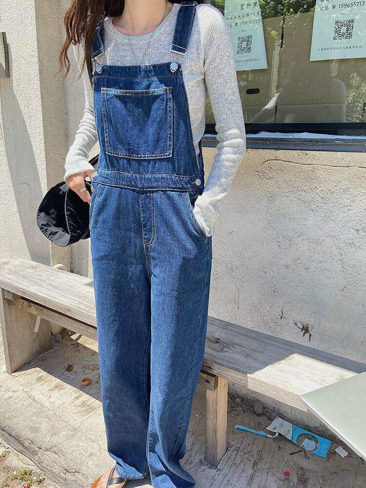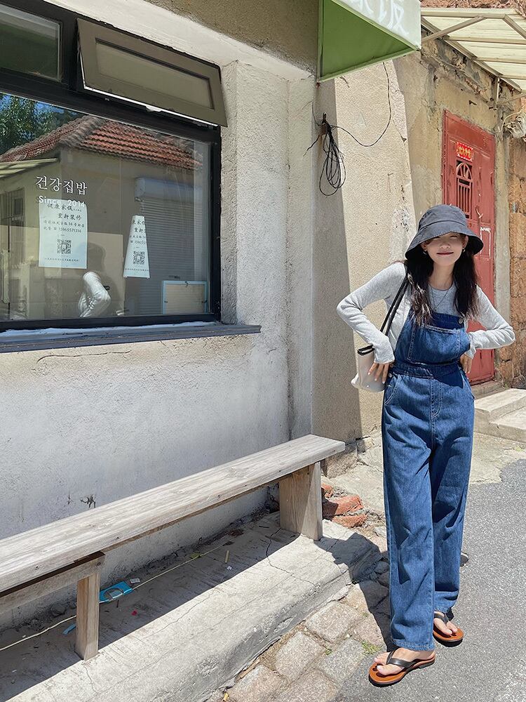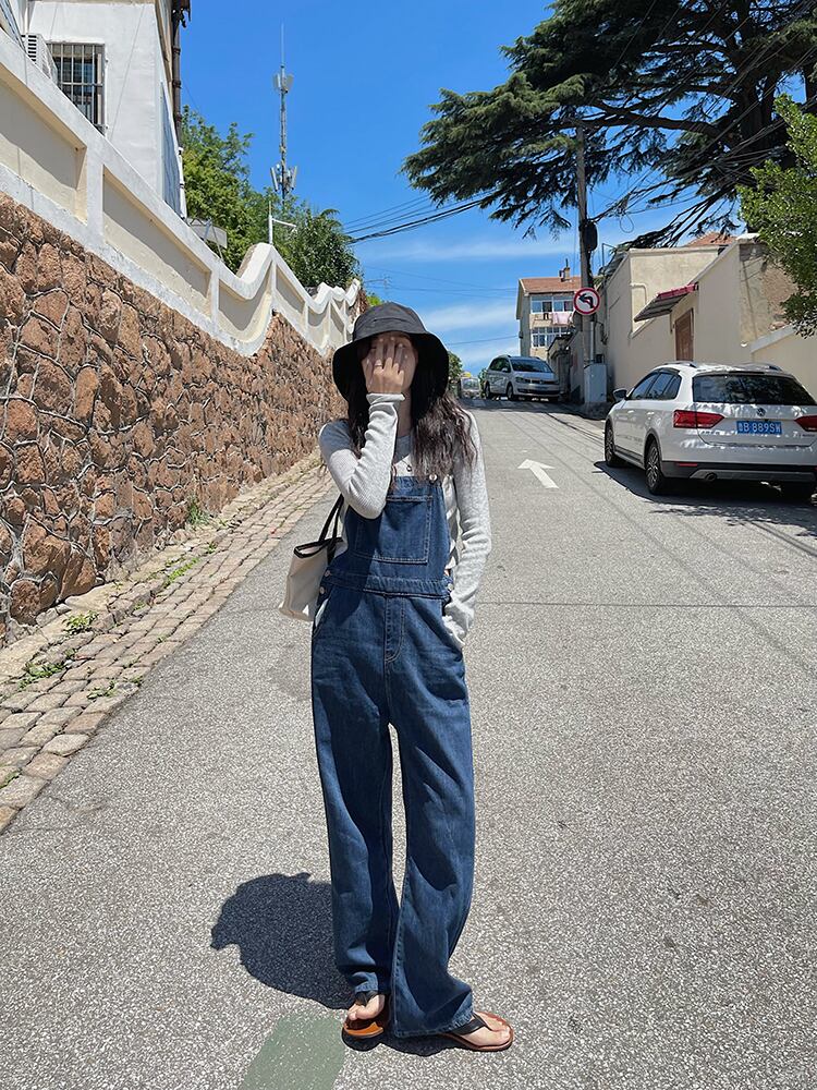 オーバーオール ウェストルーズ薄手ダークワイドレッグロングパンツ ワイドパンツ ビッグFスモールZ韓国51550926452