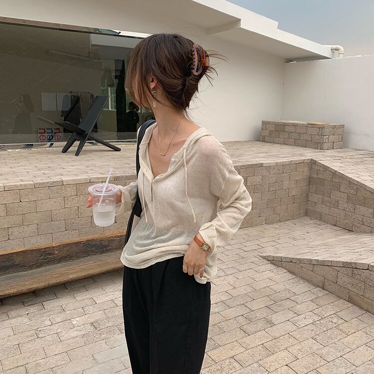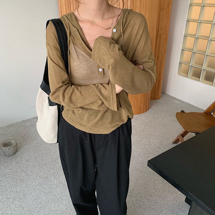 スタンダード長袖スリーブカーディガンボタンルーズ薄手レーストップス ロング レトロ ビッグFスモールZ韓国78925975641
