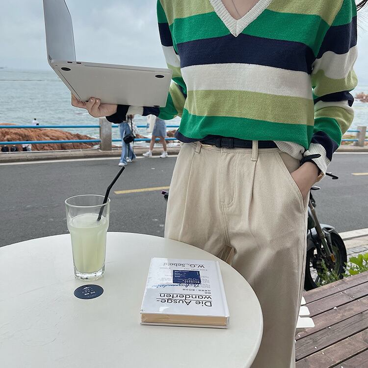 ワイドレッグパンツ オータムウェストルーズ薄手ソリッド カラーロング 秋物 ワイドパンツ ソリッドカラー ビッグFスモールZ韓国5172779020