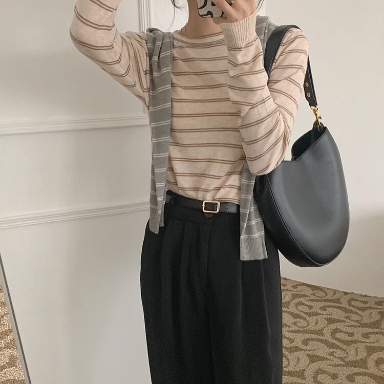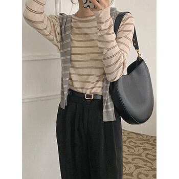 ストライプセーター スリムラウンドネックオータム 秋物 Oネック ビッグFスモールZ韓国72576257464