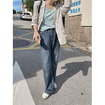 薄手ワイドレッグジーンズ オータムウェストパンツ 秋物 ワイドパンツ ビッグFスモールZ韓国29611332255