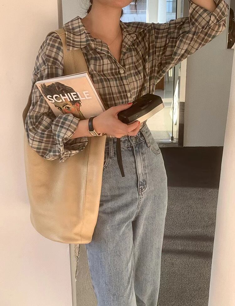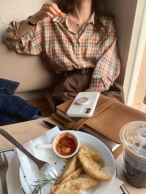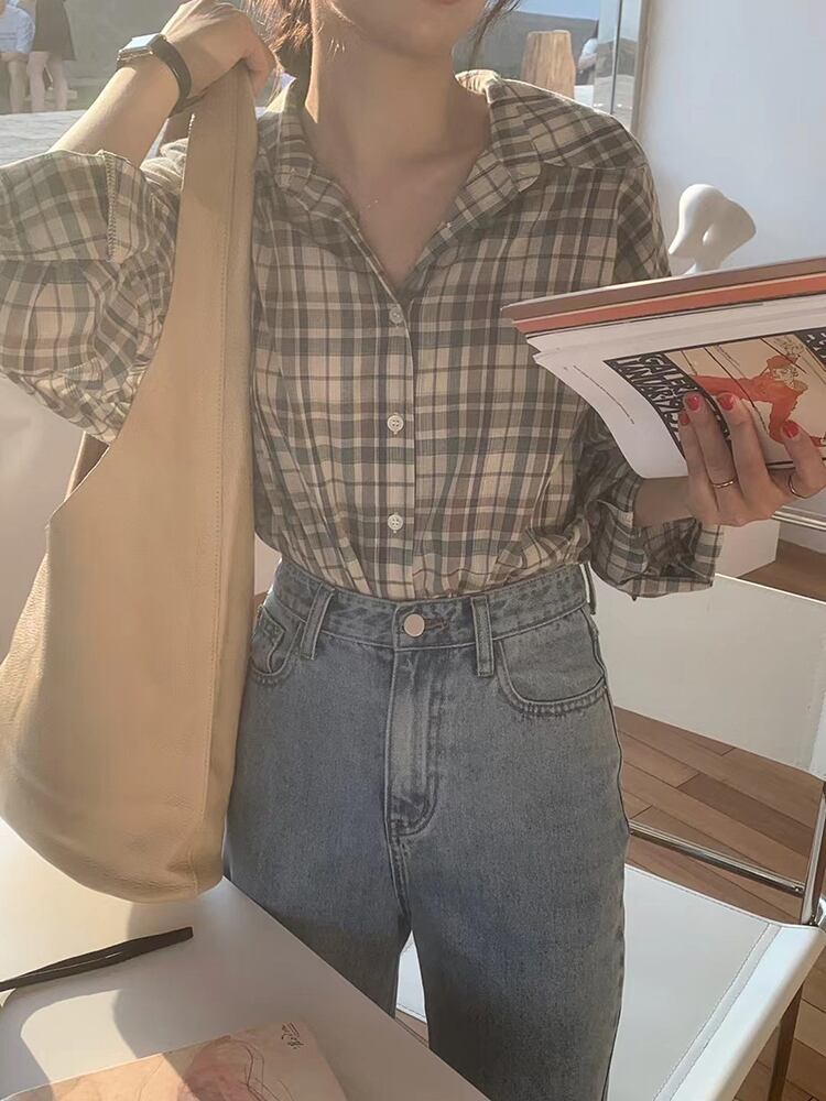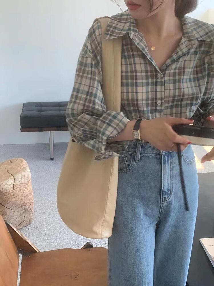シャツ 長袖スリーブルーズカラースタンダードトップス ロング レッド レトロ ビッグFスモールZ韓国38554602342