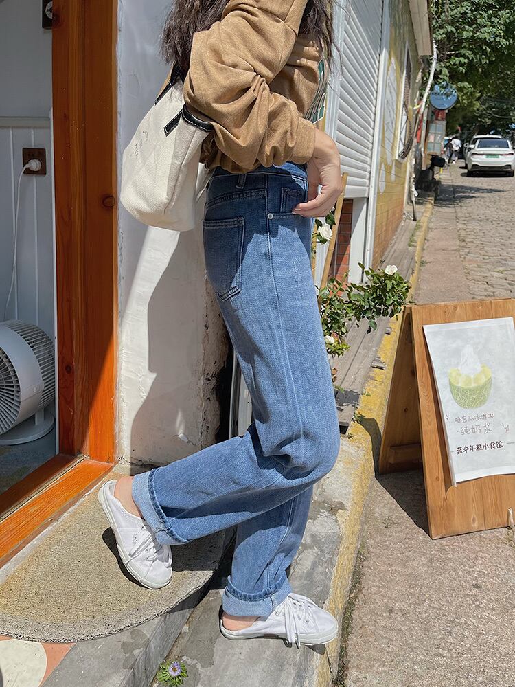 ジーンズ オータムスタンダードスタイル薄手ロングパンツ レトロ 秋物 ビッグFスモールZ韓国75204708441