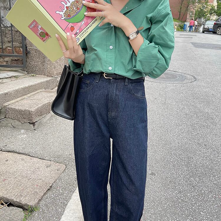 ダークブルーワイドレッグジーンズ オータムウェスト薄手スタイル 秋物 ワイドパンツ ビッグFスモールZ韓国21149362599