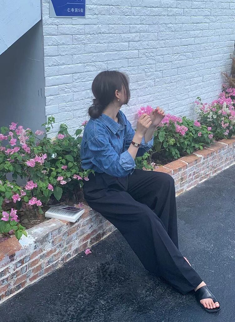シャツ スタンダードカジュアルオータムブルートップス レトロ 秋物 ビッグFスモールZ韓国56150455225