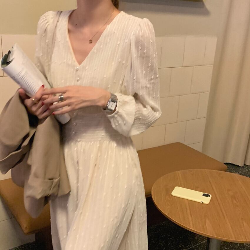 スタンダードVネックロングスカート レトロ ビッグFスモールZ韓国21932750246