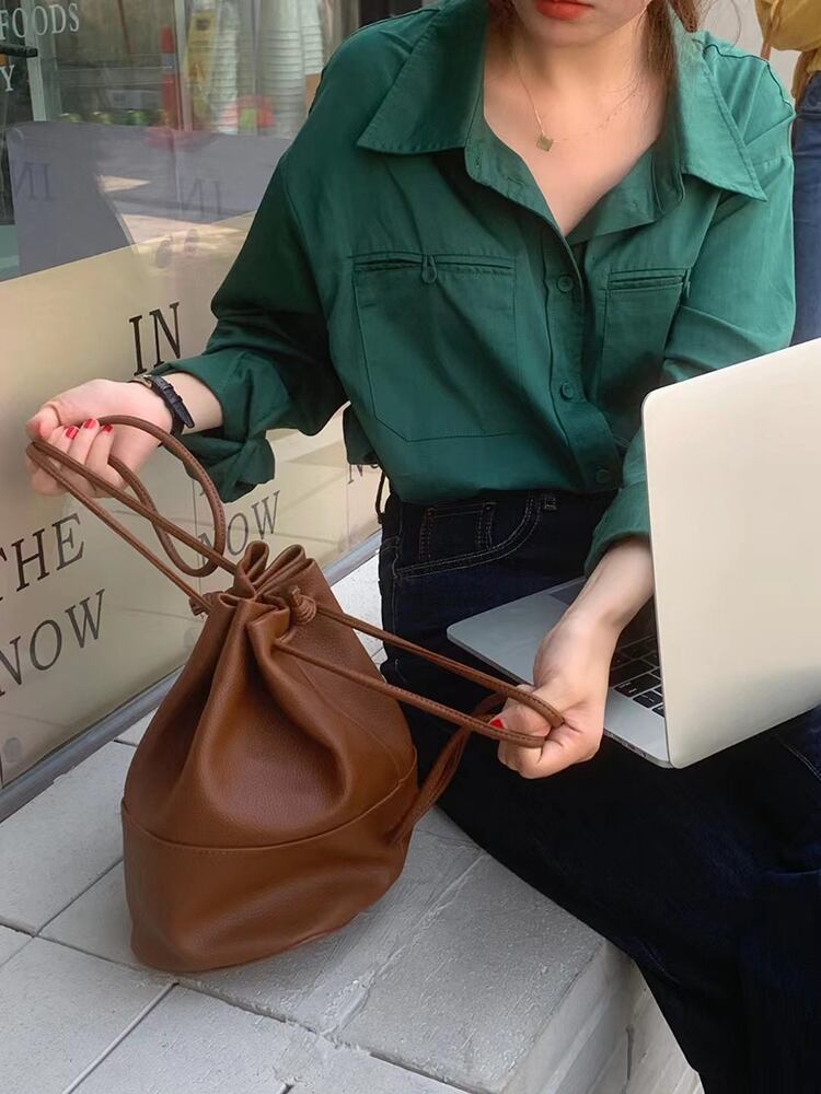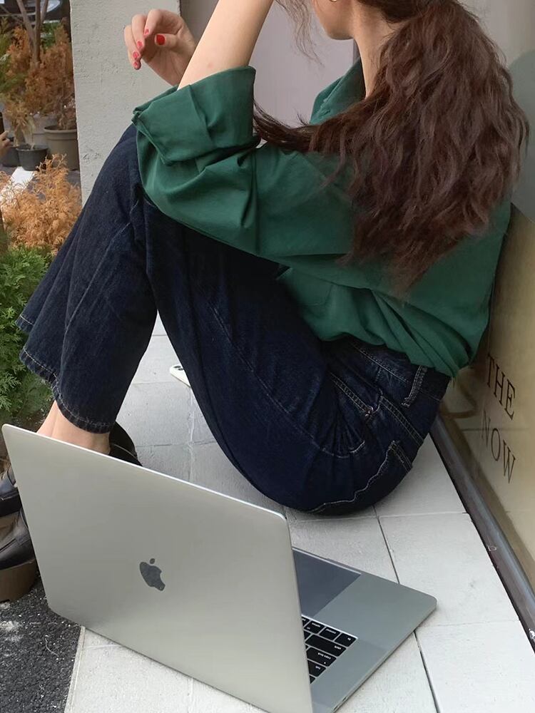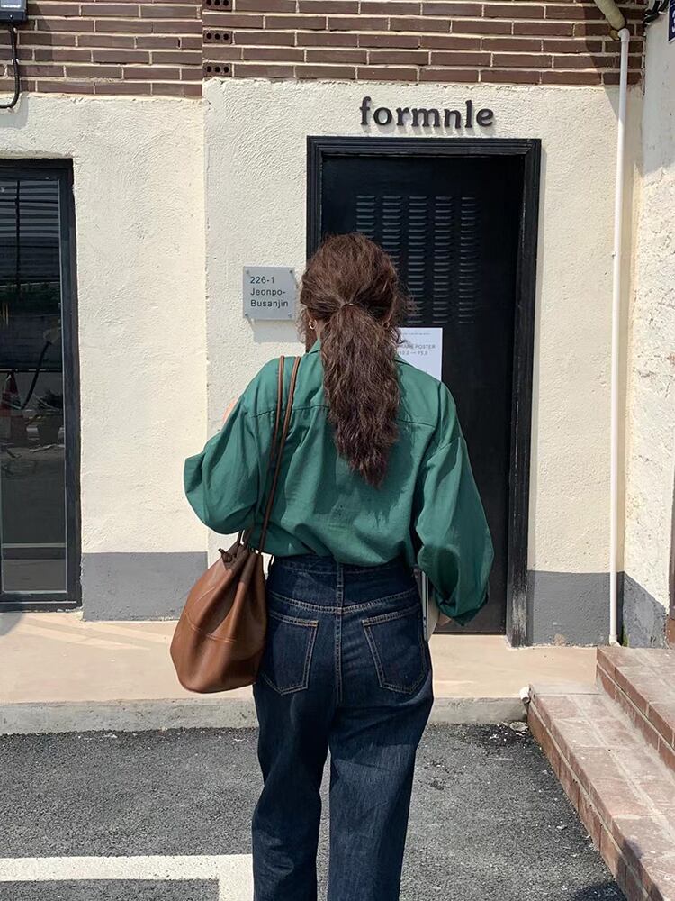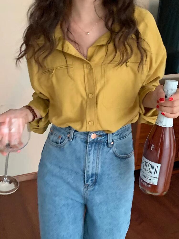 ディテイルドシャツ オータムスタイルスタンダードルーズカジュアルソリッド カラー レトロ 秋物 ソリッドカラー ビッグFスモールZ韓国15630924417