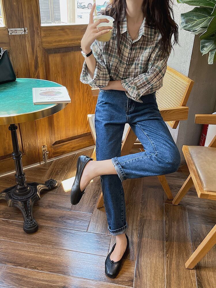 スリムジーンズ スタンダードウェスト薄手パンツ レトロ エラスティック 伸縮 ビッグFスモールZ韓国81560861035