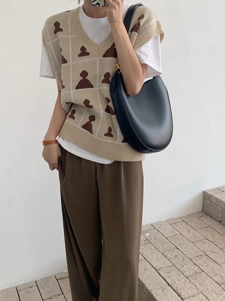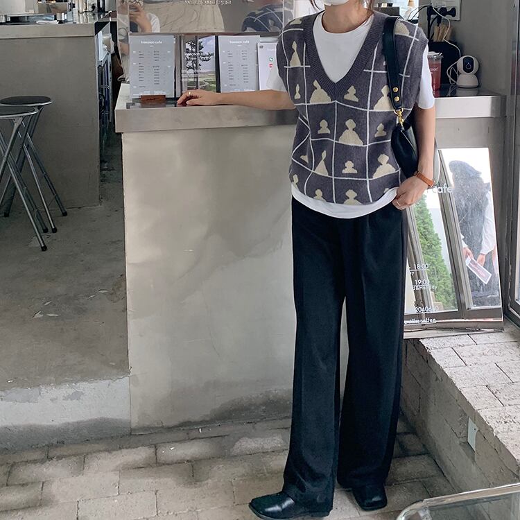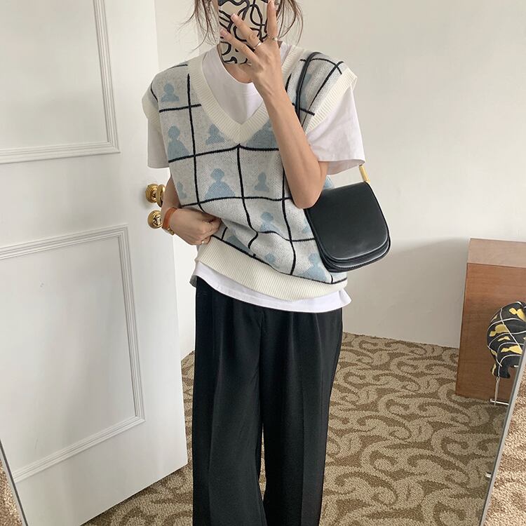 パターンスタイルニットノースリーブシングル オータム 秋物 ビッグFスモールZ韓国93873216433