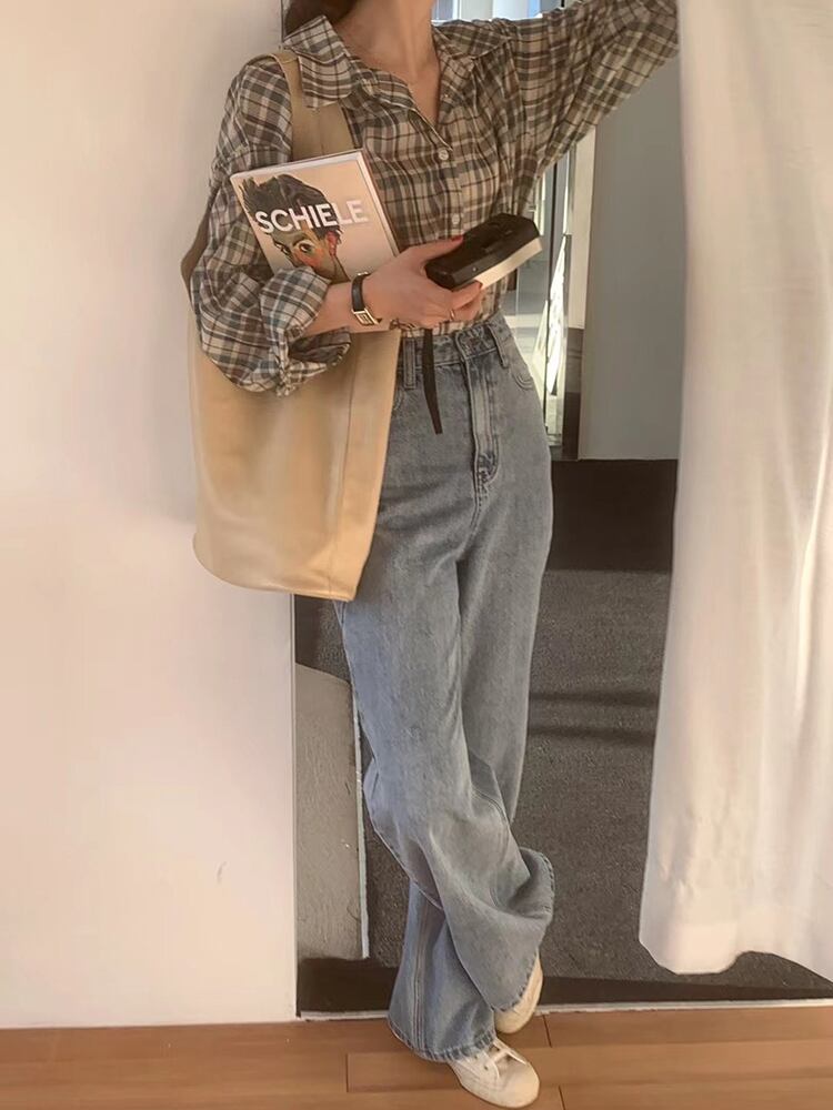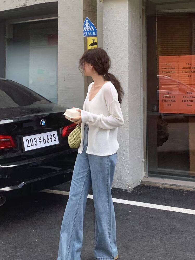スタンダードジーンズ オータムルーズウェスト薄手ワイドレッグパンツ レトロ ストリート 秋物 ワイドパンツ ビッグFスモールZ韓国84946870308