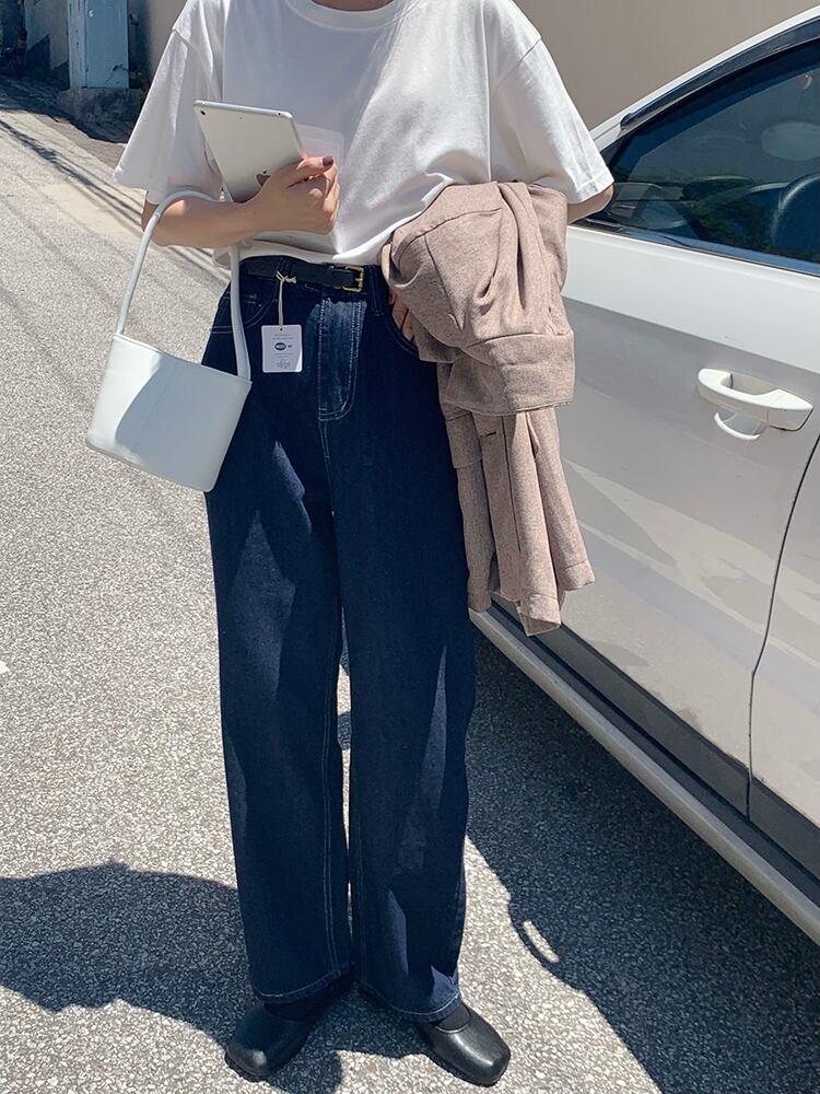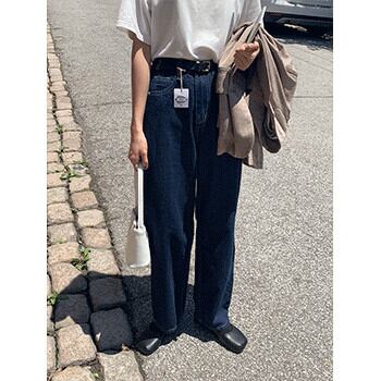 ジーンズ オータムウェストスタンダードルーズワイドレッグ レトロ 秋物 ワイドパンツ ビッグFスモールZ韓国43460227017