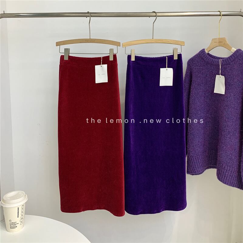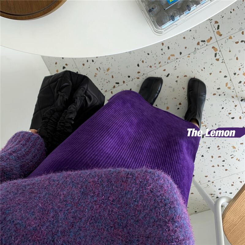 スタンダードコーデュロイスカート ハイウェストウェストAライン レトロ ビッグFスモールZ韓国38358521833