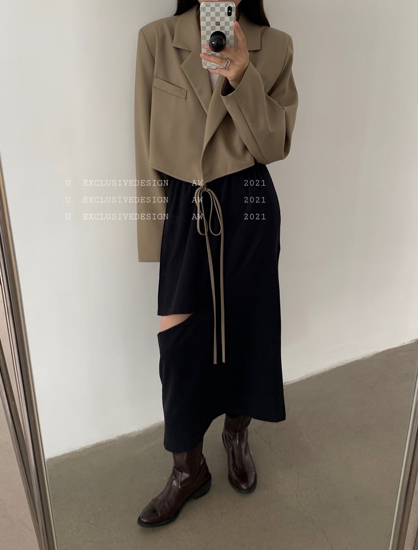 スカート オータムストレッチウェスト ストリート エラスティック 伸縮 秋物 ビッグFスモールZ韓国95774003349