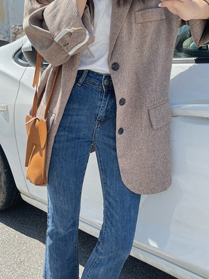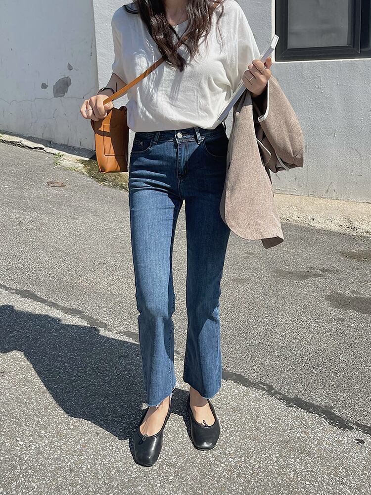 オータムハイウェストウェストスリムパンツ 秋物 ビッグFスモールZ韓国52023035448