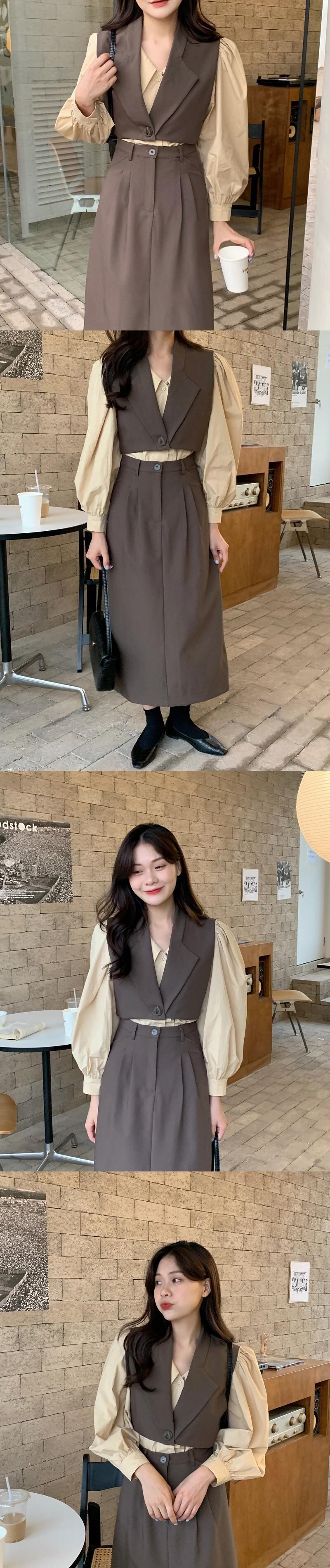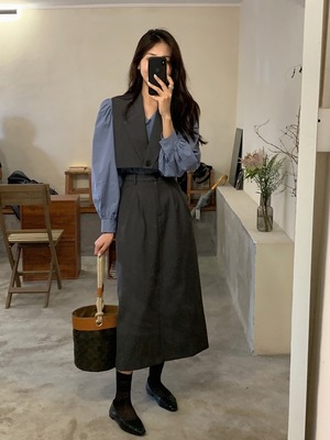 色:カーキ色のシャツ,フォグブルーシャツ,グレーのベスト,グレーのスカートサイズS,グレーのスカートサイズM,ブラウンベスト,ブラウンスカートサイズS,ブラウンスカートMサイズ
