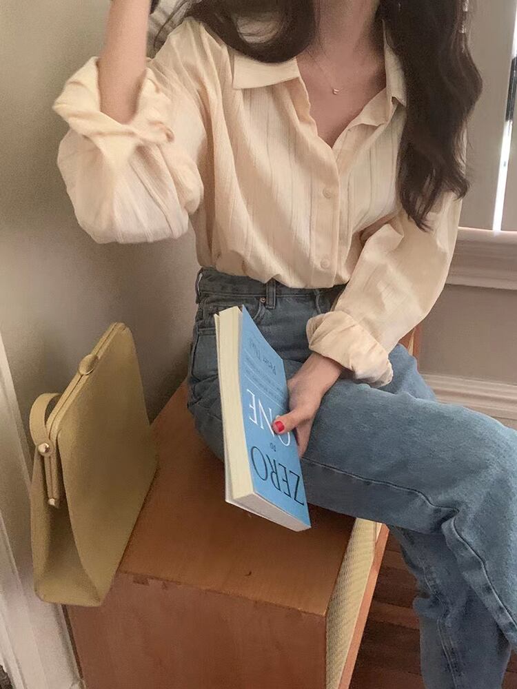 シャツ オータムルーズトップス ロング 秋物 ビッグFスモールZ韓国89824790632