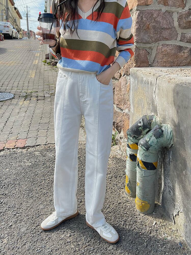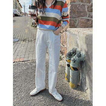 ホワイトジーンズ オータムハイウェスト薄手 秋物 ステッチ ビッグFスモールZ韓国76057254389