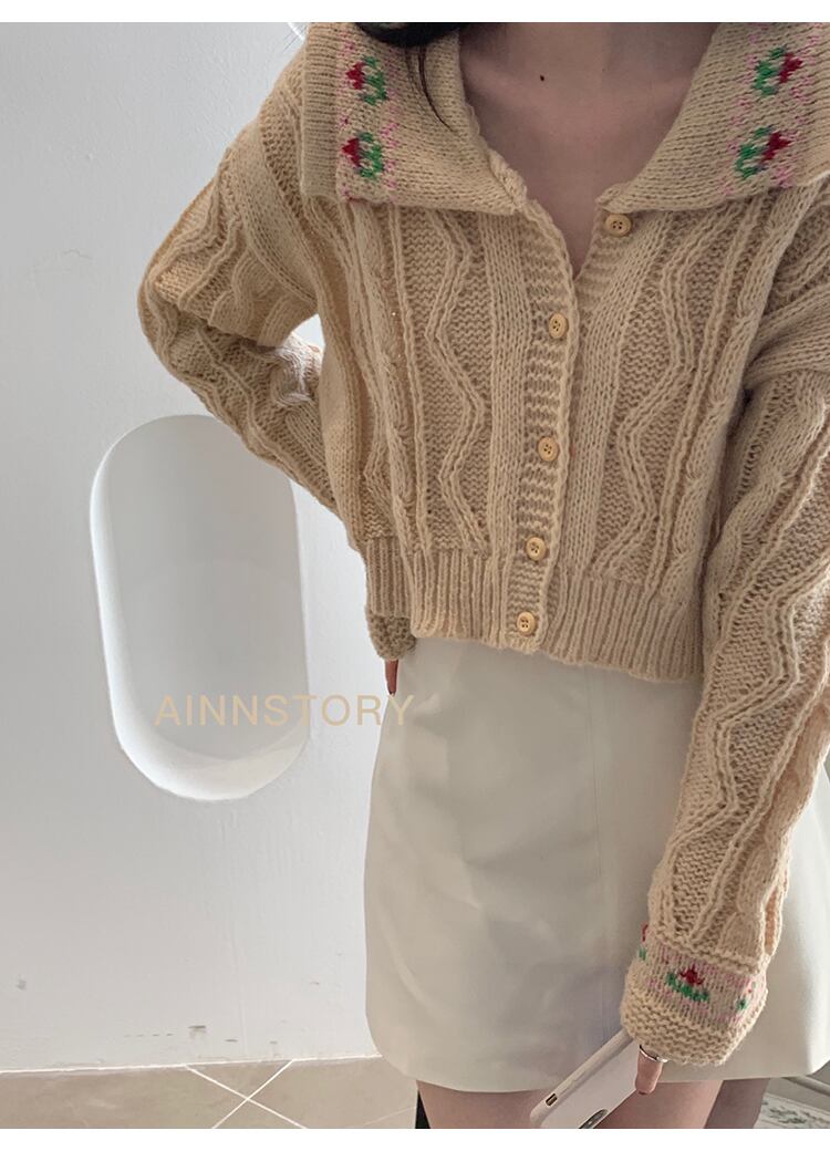 オータムショートセーター ジャケット ルーズ長袖スリーブウールカーディガン ロング 秋物 ビッグFスモールZ韓国67131681172