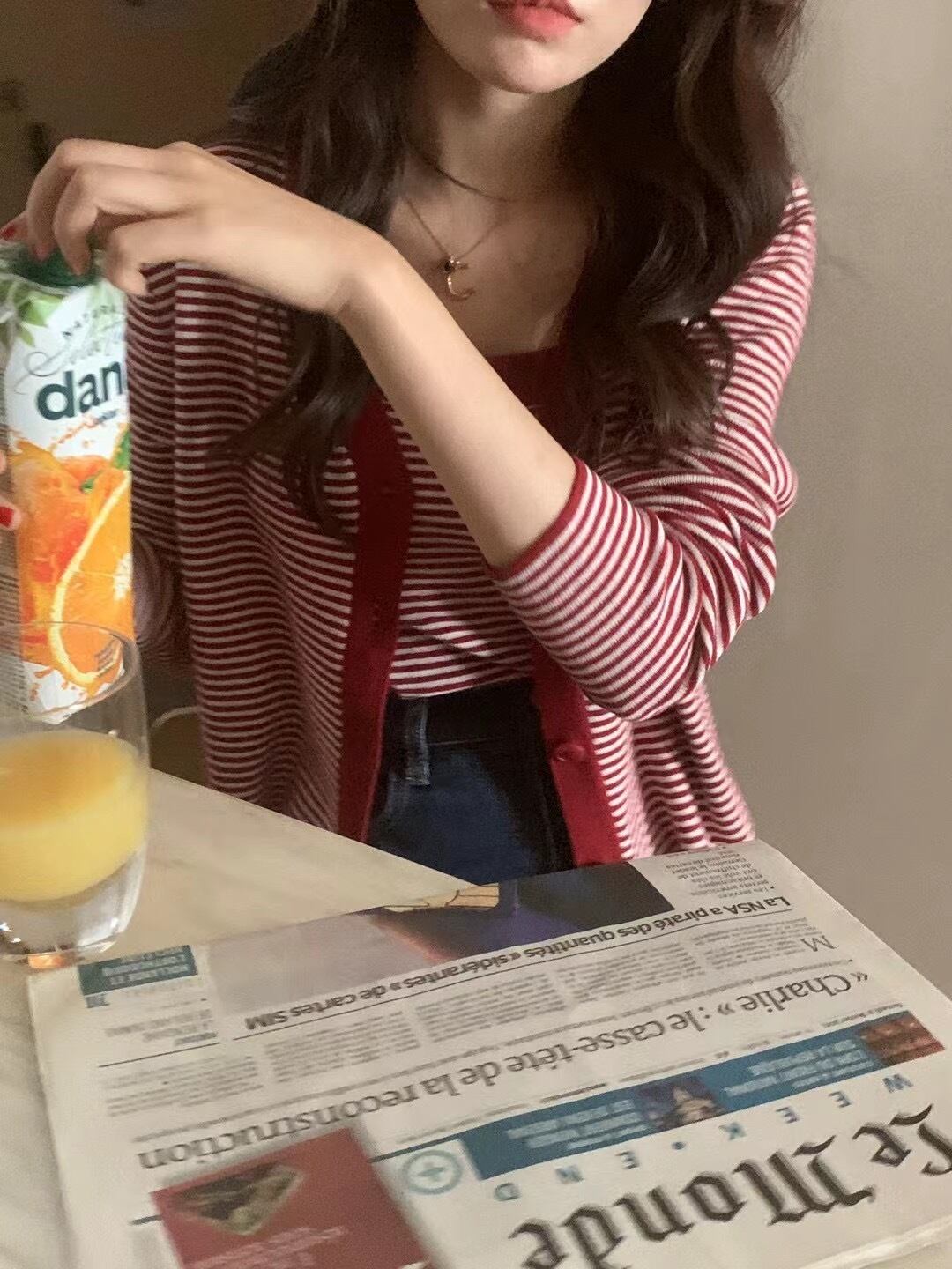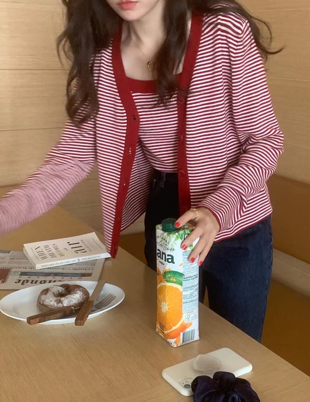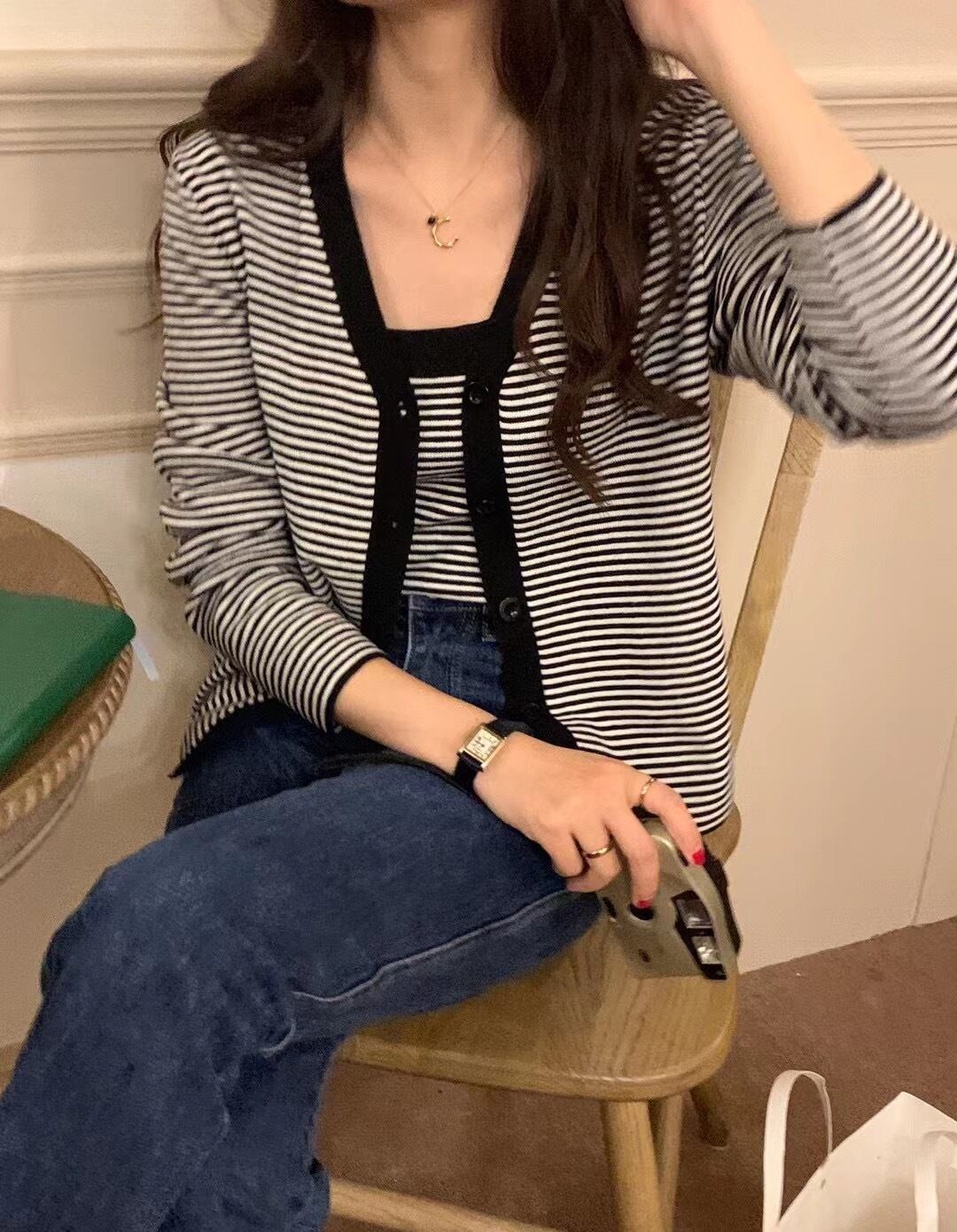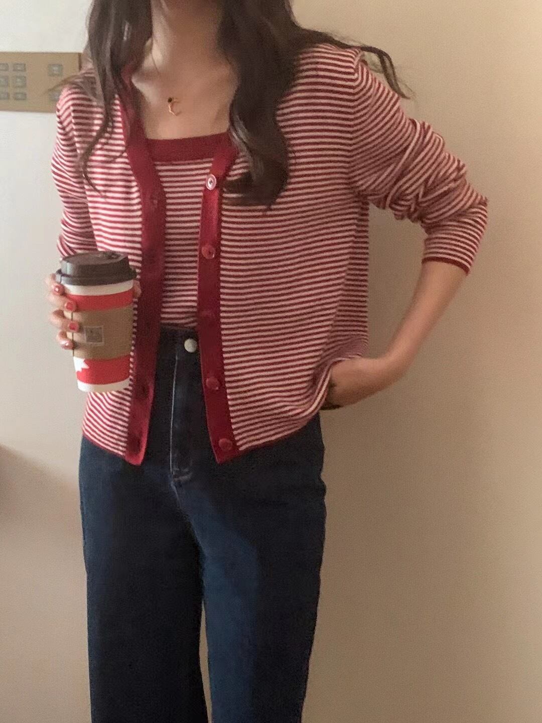 ストライプカーディガンブラックサイドスリム薄手トップス ビッグFスモールZ韓国19833888440