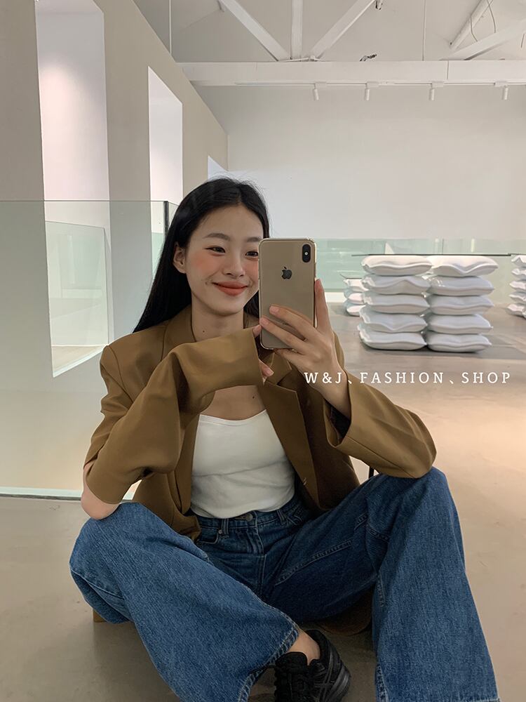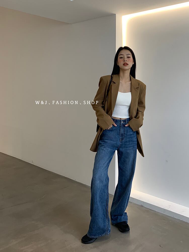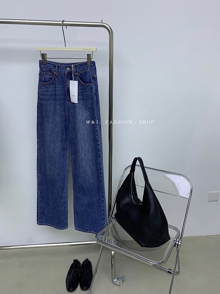 ソリッド カラージーンズ オータムウェスト薄手パンツ 秋物 ワイドレッグ ワイドパンツ ソリッドカラー ビッグFスモールZ韓国36418167248