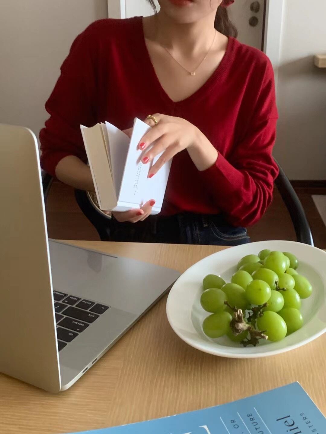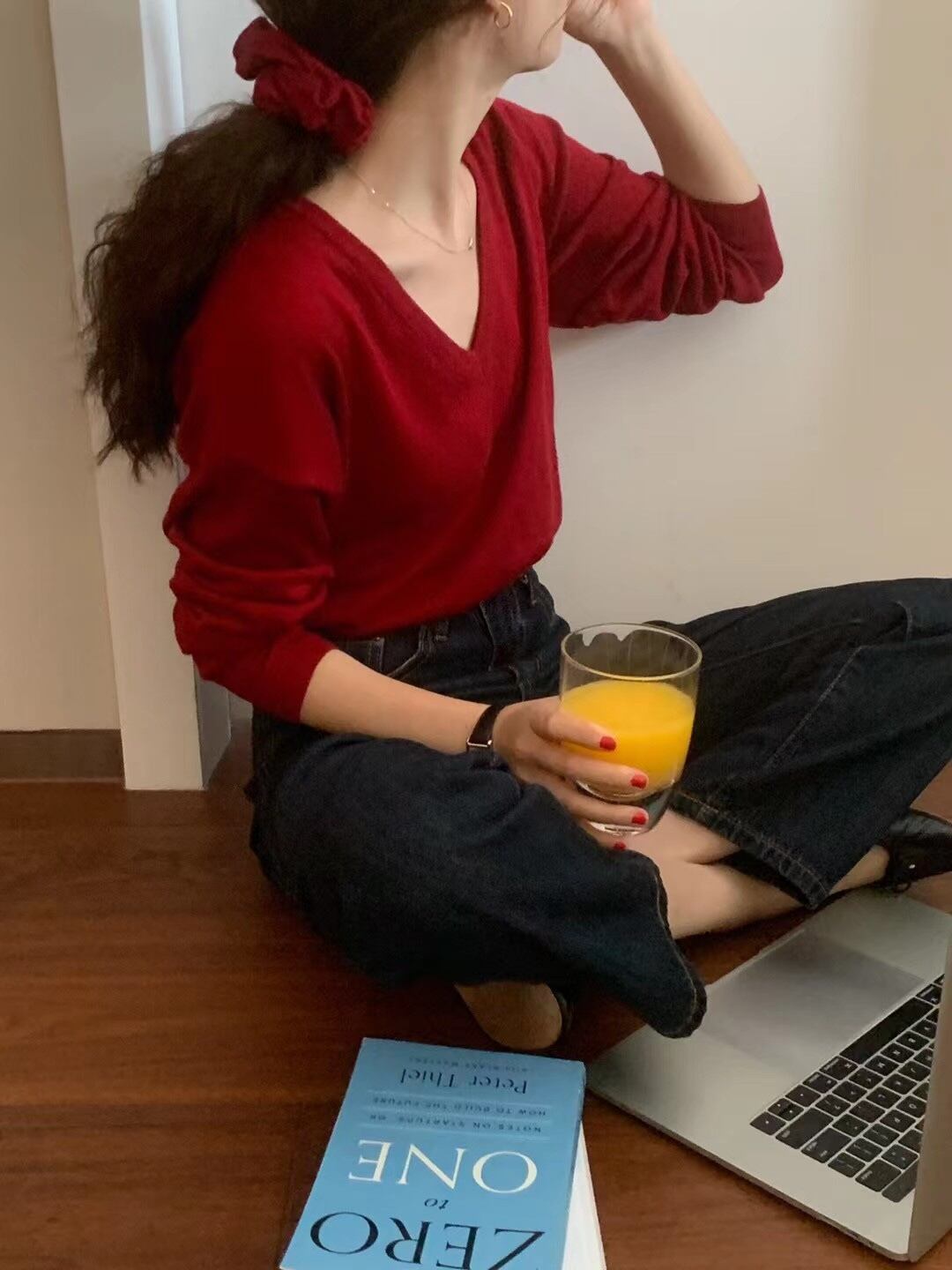 ウールニットセーター オータムスタイル薄手Vネック長袖スリーブプルオーバー ロング 秋物 ビッグFスモールZ韓国89088928389
