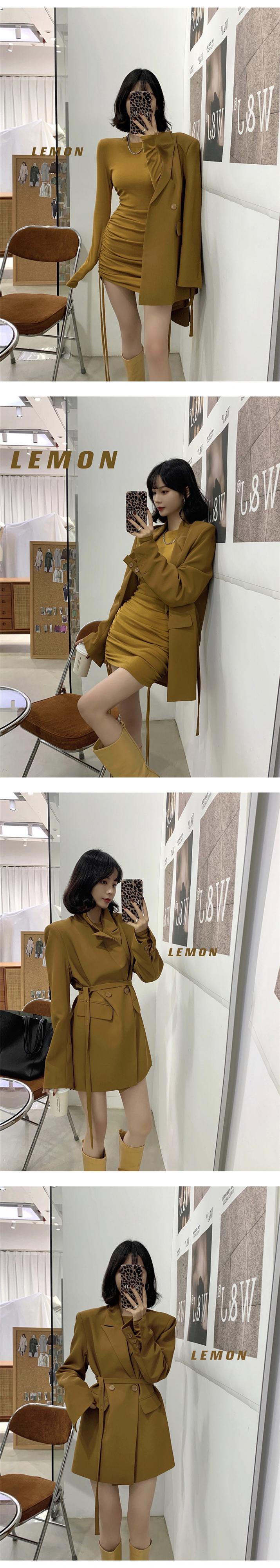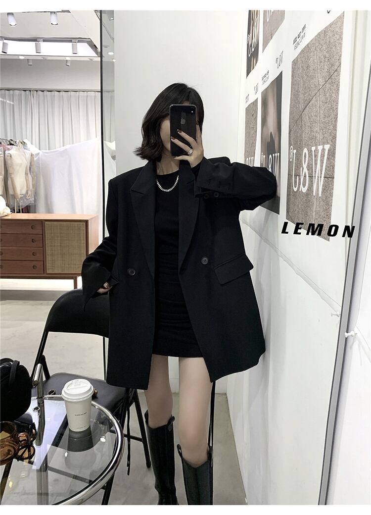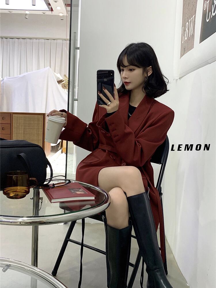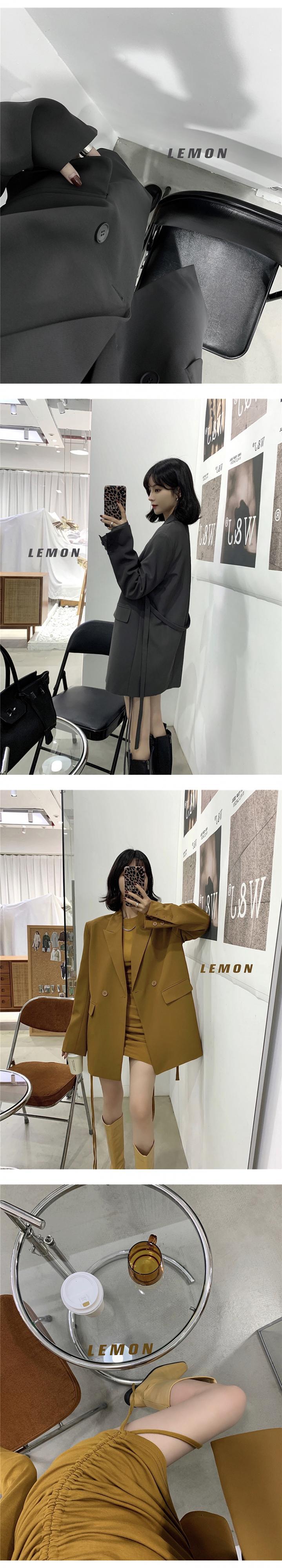 ダブルブレストウェストジャケット スプリングオータムルーズ ロング レース ストリート 春物 秋物 レースアップ ビッグFスモールZ韓国32732663074