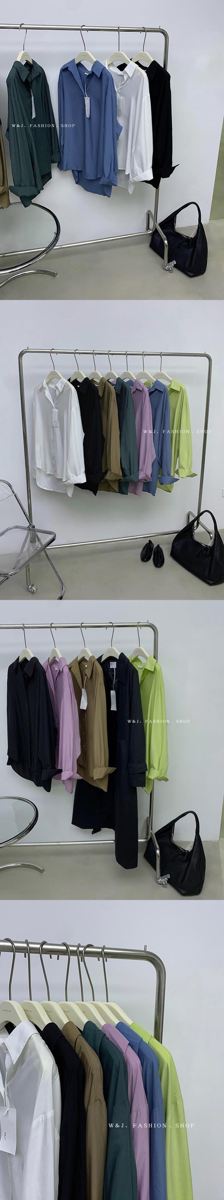 ソリッド カラー薄手スタイルシャツレディースオータム ロング 秋物 ソリッドカラー ビッグFスモールZ韓国98574059061