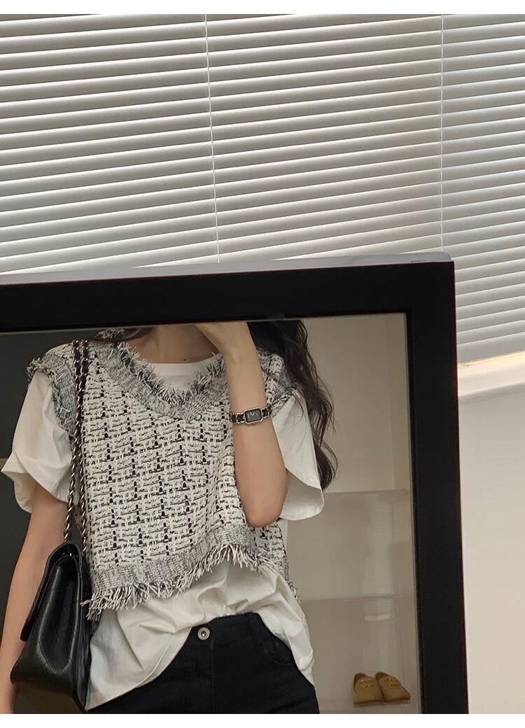 プルオーバー オータムショートスタイルスタンダードVネックノースリーブ レトロ 秋物 ビッグFスモールZ韓国67110028730