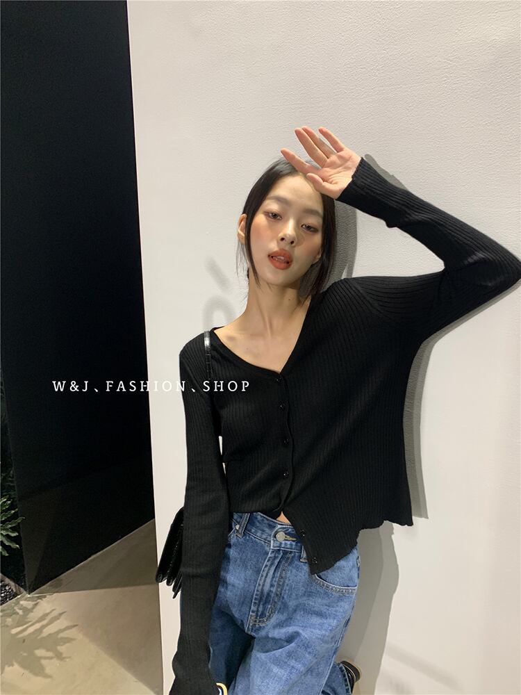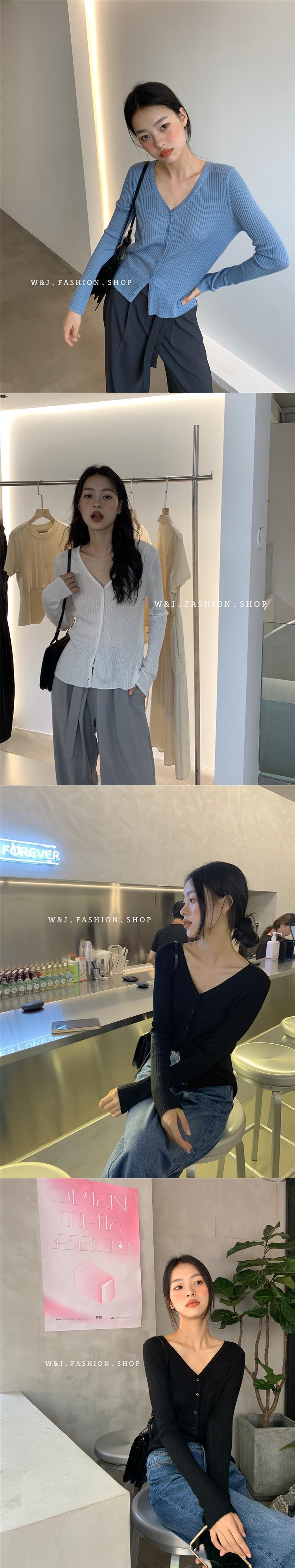 薄手カーディガンオータムスリムVネック長袖スリーブセーター ロング 秋物 ビッグFスモールZ韓国60292854244