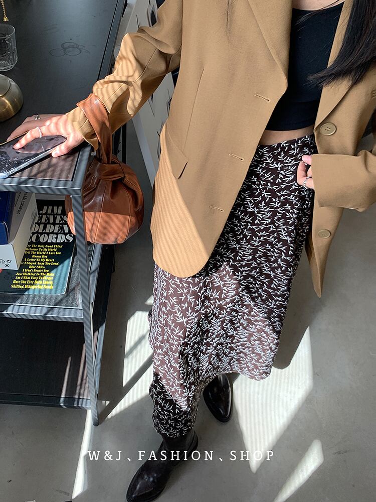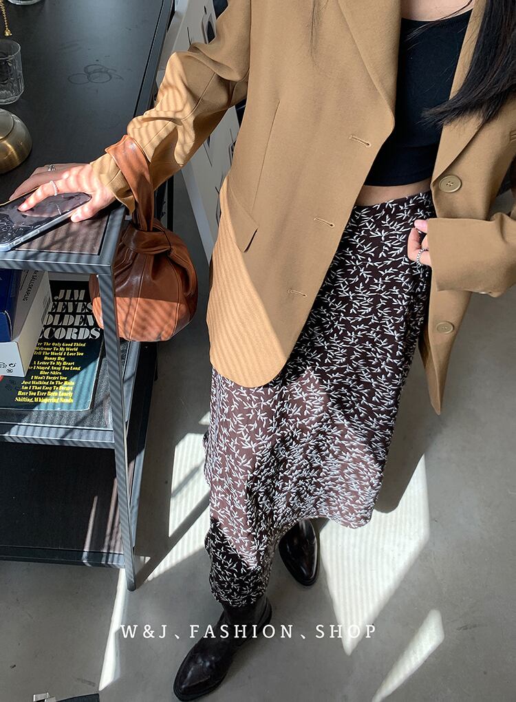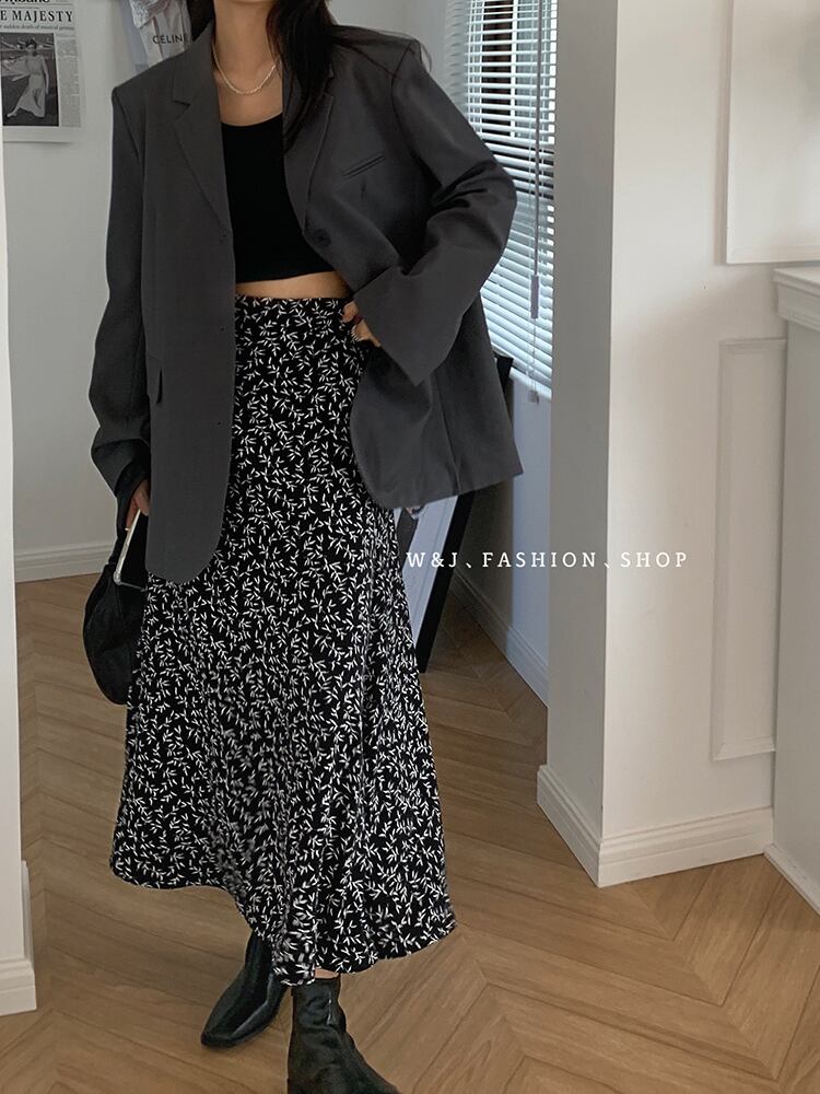 オータム薄手フローラルスカート スリムハイウェストウェストAライン 秋物 花柄 ビッグFスモールZ韓国35162800002