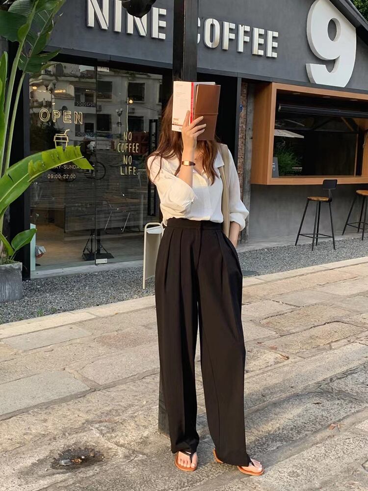 パンツ オータムカジュアルハイウェストルーズブラックロング 秋物 ビッグFスモールZ韓国99242842096