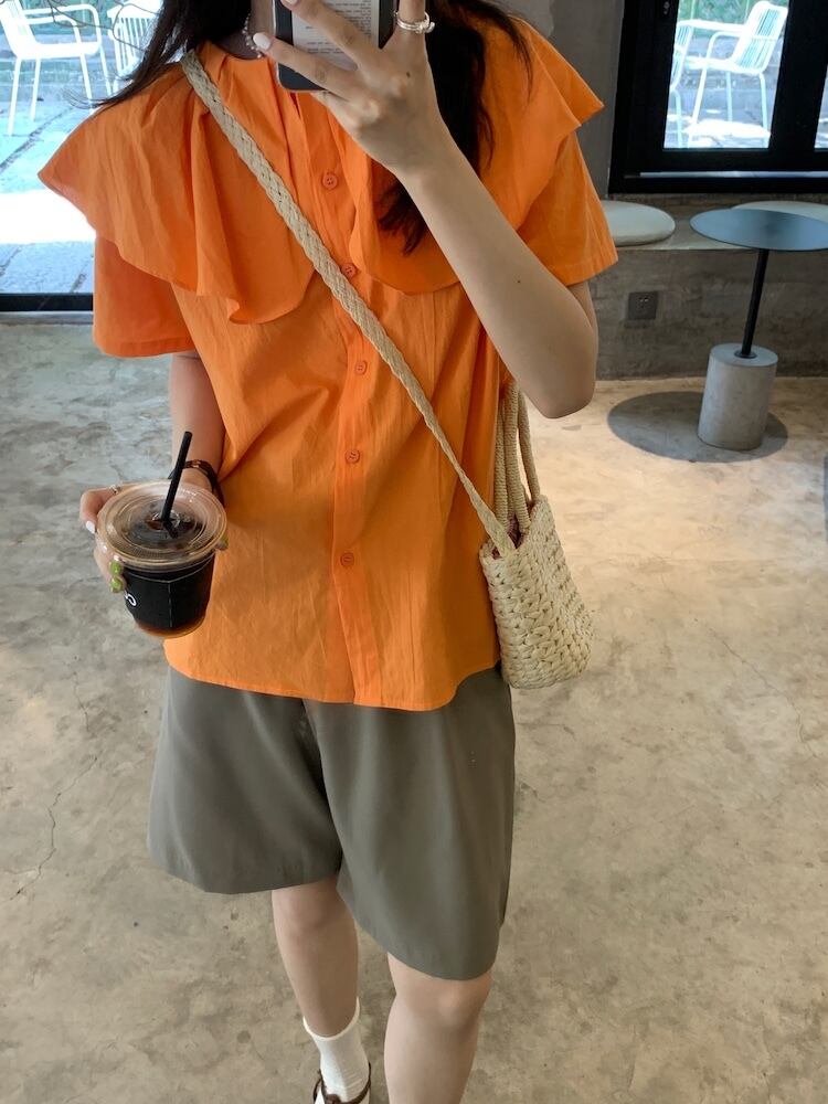 カラーシャツ サマーソリッド ルーズスリムトップス 夏物 ソリッドカラー ビッグFスモールZ韓国26995410694